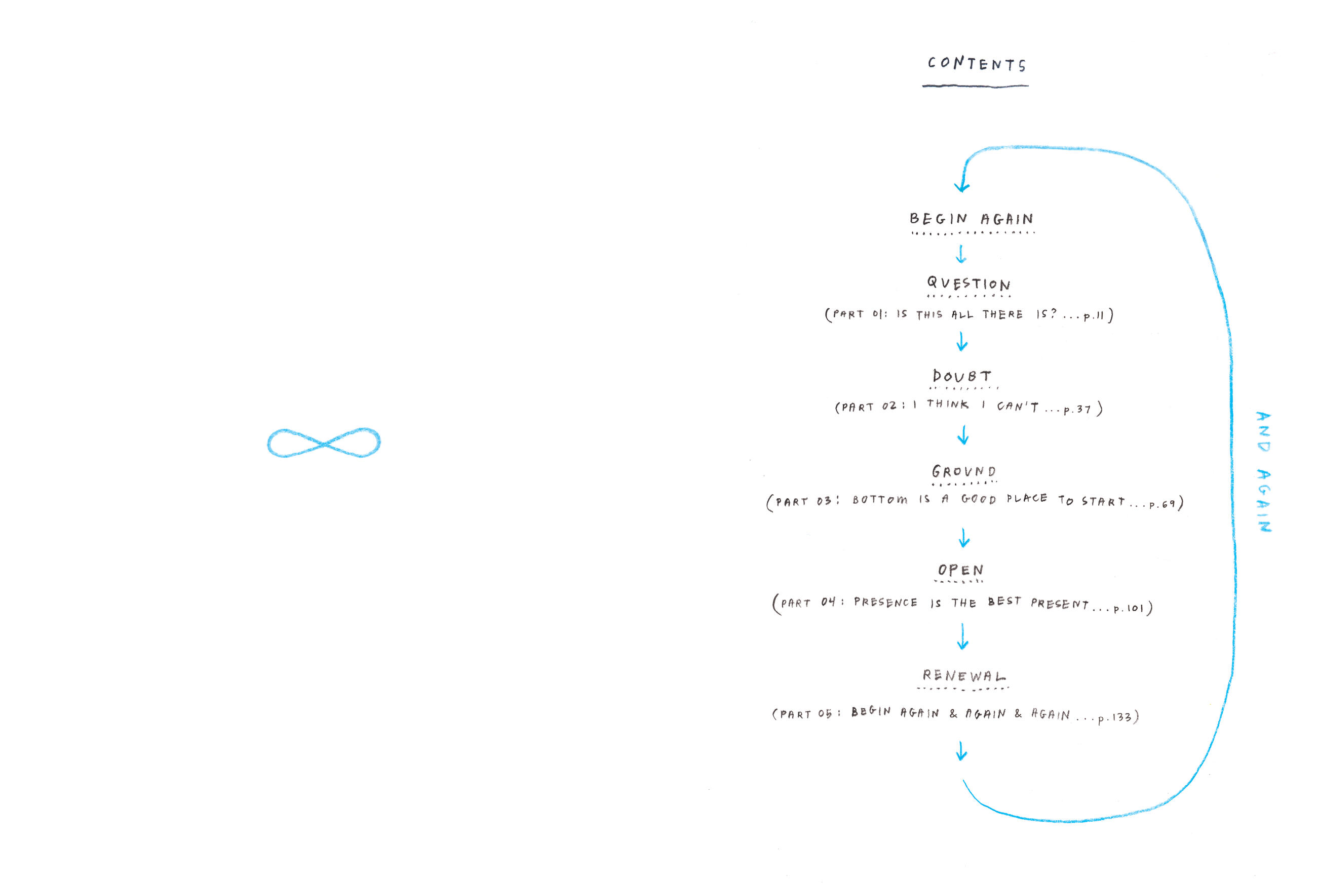 Begin Again, and Again, and Again started as notes to herself—a practice of thinking through images and words to map the territory of uncertainty. What emerged is a book about the fundamental rhythm of being human: the constant cycle of questioning, doubt, finding ground, opening, and renewal.