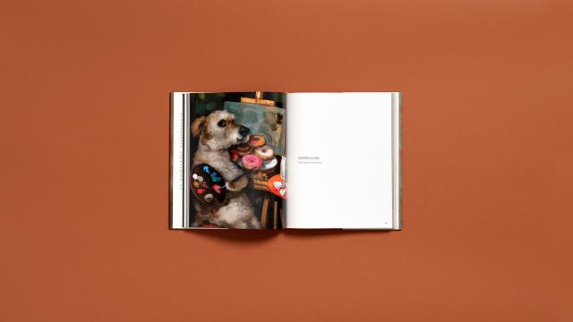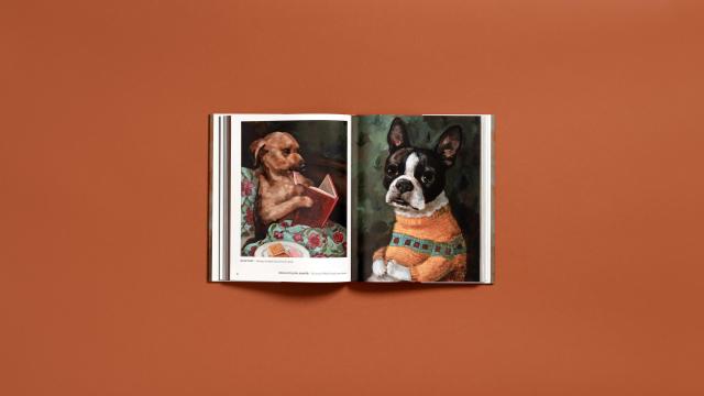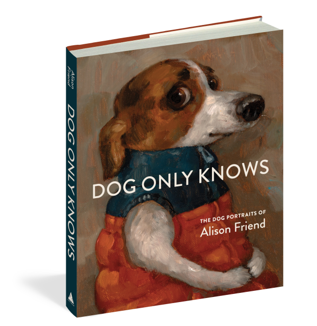 Welcome to Alison Friend’s world of dogs, a singular and very special place created by an artist with a unique gift for depicting that ineffable thing we call “character”—dog characters, actually—using oil paint, empathy, techniques of the Old Masters, and an imagination like no other. With their big expressive eyes and Mona Lisa smiles, charming habits and childlike pleasures, the subjects of these portraits seem all too human yet fantastically doglike.