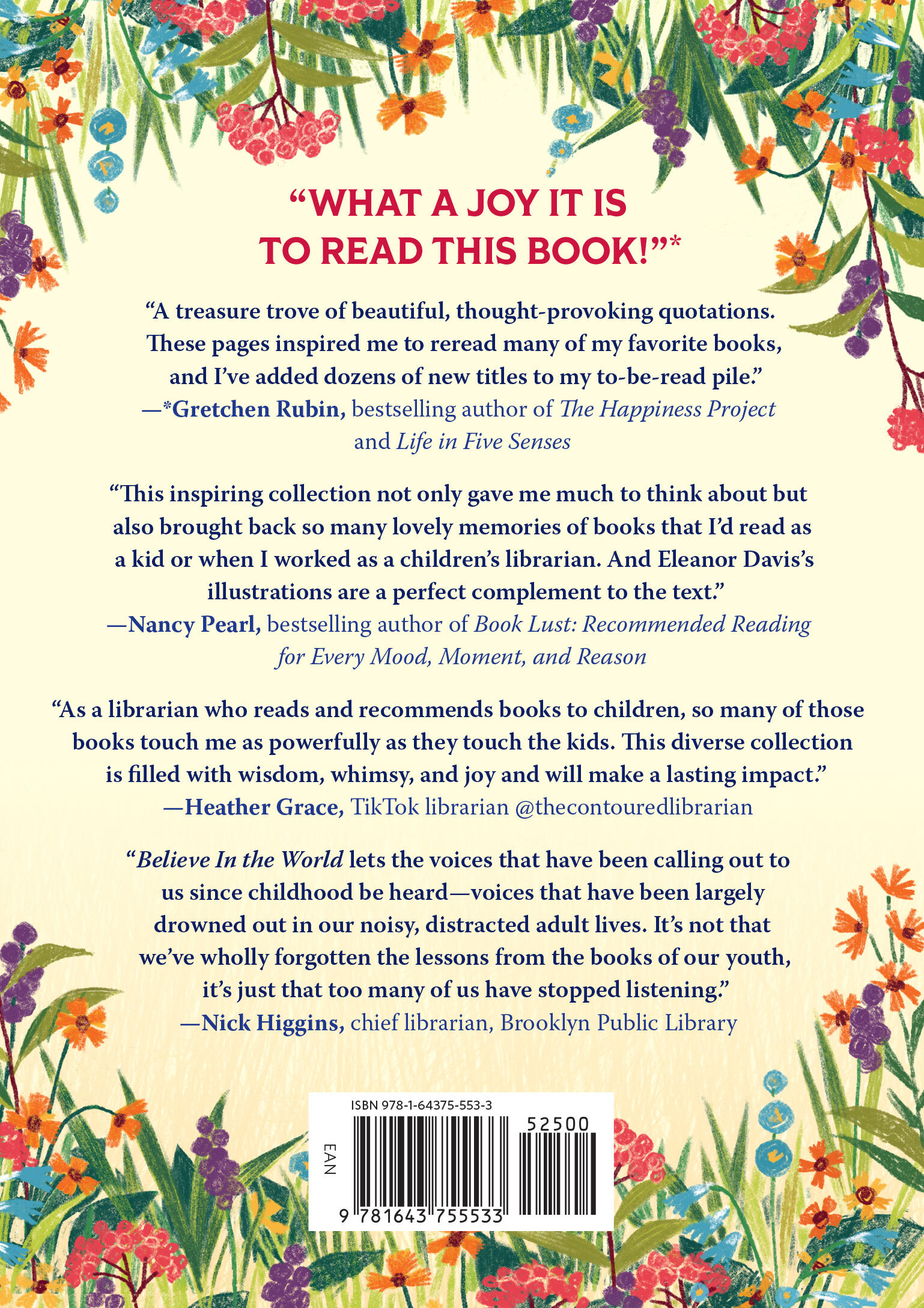 “Believe in the World lets the voices that have been calling out to us since childhood be heard—voices that have been largely drowned out in our noisy, distracted adult lives. Gash and Howard have given us a way to recall a time in our lives when being human meant aspiring to be kind, finding ways to be brave, showing gratitude, holding community and family close, and seeking friendship above all else. It's not that we've wholly forgotten the lessons from the books of our youth, it's just that too many of us have stopped listening.”Nick Higgins, Chief Librarian, Brooklyn Public Library