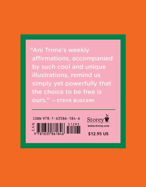 “For all who are curious, willing, and open to working with our minds, Ani Trime has created the perfect vehicle to move, inspire, and guide us. These weekly affirmations, accompanied by such cool and unique illustrations, remind us simply yet powerfully that the choice to be free is ours. So, please feed your mind and keep this wonderful book next to your cushion or bedside, and most importantly, in your heart.” — Steve Buscemi, actor