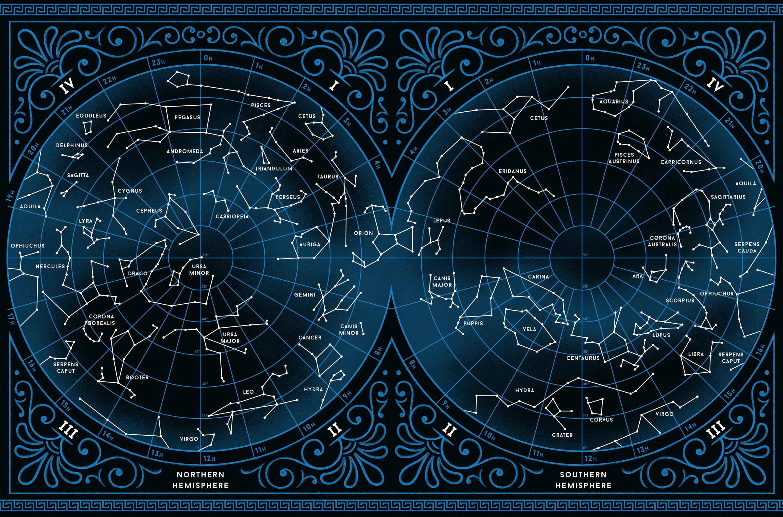 Organized by hemisphere and celestial quadrant, the book also includes two illustrated star maps to help guide the reader to the location of each constellation, as well as 48 color plates throughout.