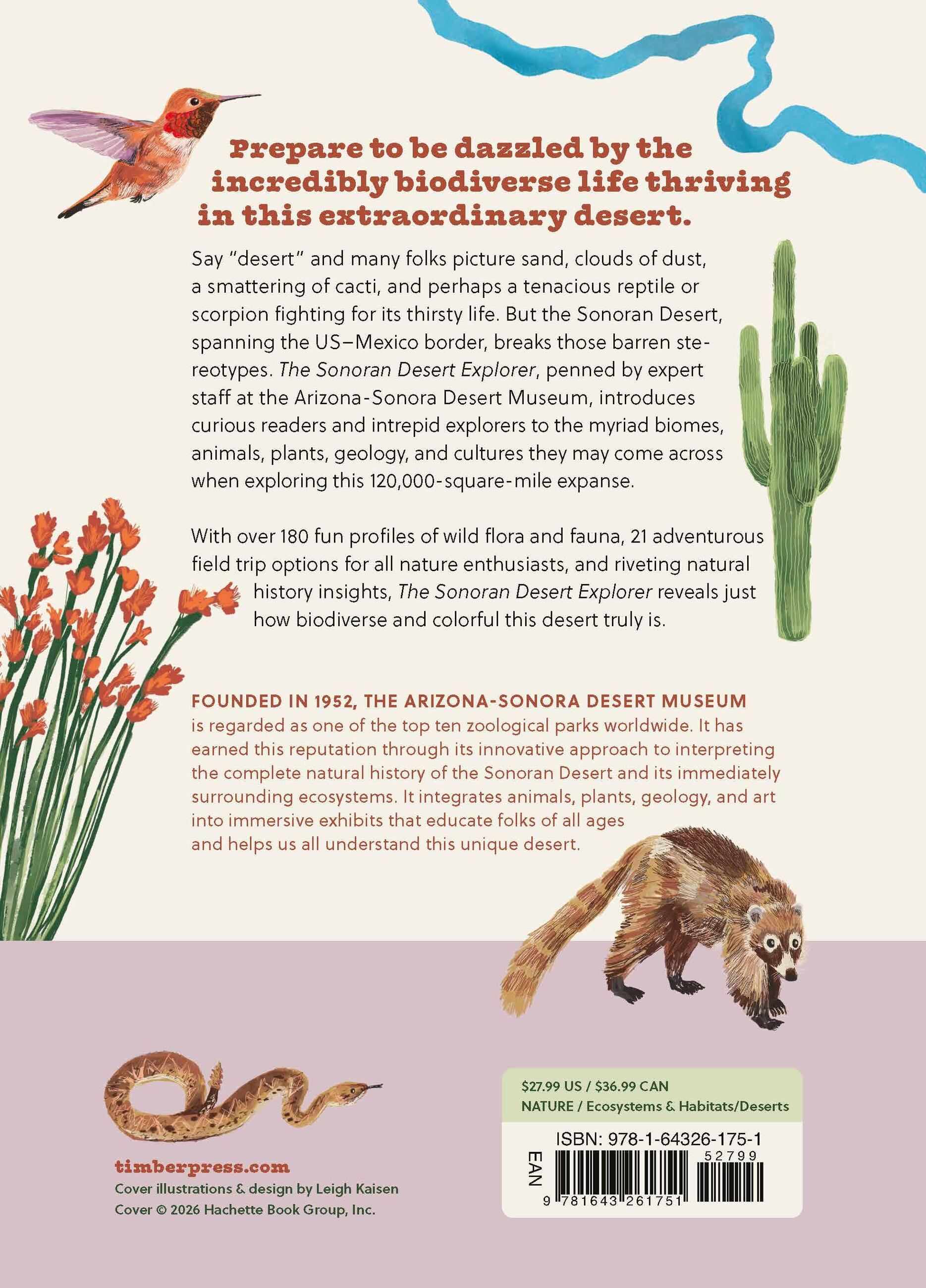 With over 180 fun profiles of wild flora and fauna observed in this expanse, 20 adventurous field trip options for all nature enthusiasts, and riveting and inclusive natural history insights, Sonoran Desert Explorer will reveal to many just how biodiverse and colorful this desert truly is.