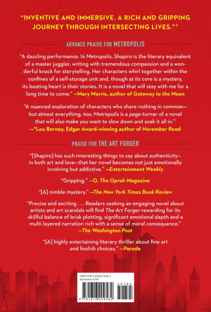 “In Metropolis, Shapiro is the literary equivalent of a master juggler, writing with tremendous compassion and a wonderful knack for storytelling. Her characters whirl together within the confines of a self-storage unit and, though at its core is a mystery, its beating heart is their stories. It is a dazzling performance and a novel that will stay with me for a long time to come.”