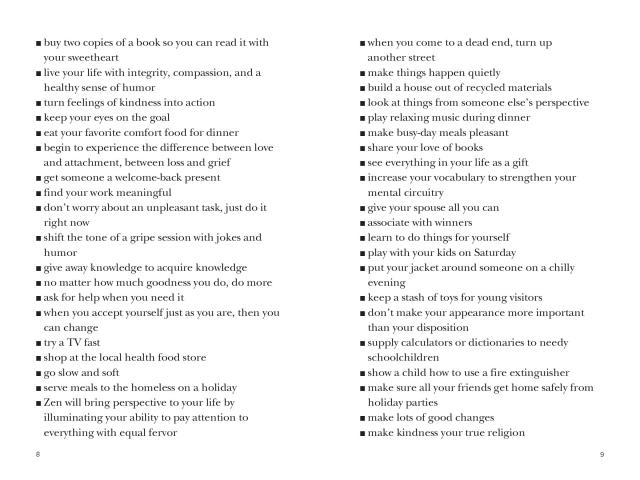 Created by Barbara Ann Kipfer, the author whose books-including 14,000 Things to Be Happy About, 8,789 Words of Wisdom, and The Wish List-have 1.2 million copies in print, Instant Karma is a compulsive, densely packed, chunky little book of 10,000 or so suggestions, wishes, thoughts, and the occasional heartening quotation.