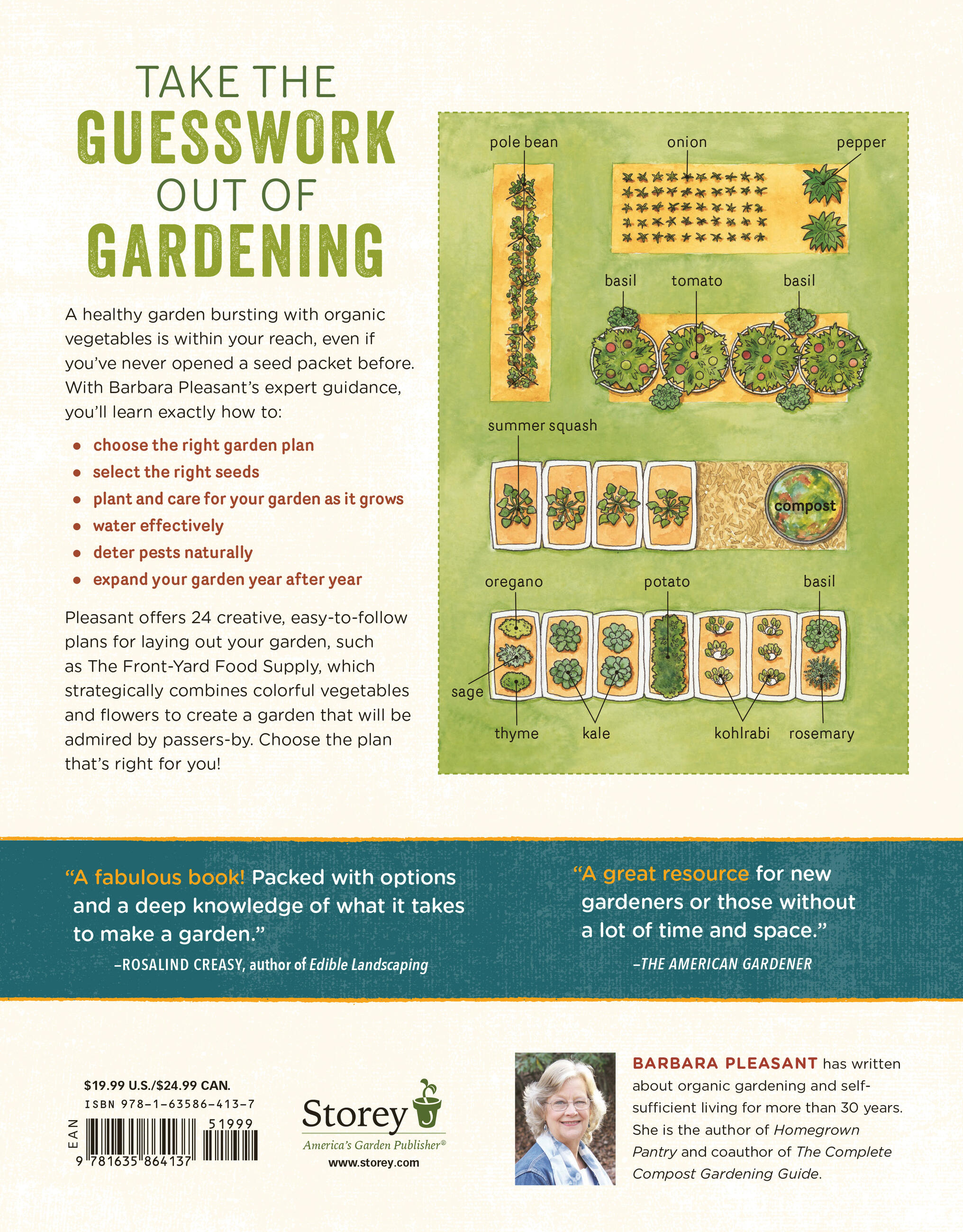 From exactly what plants (and how many) to buy, where and when to plant them, and how to care for each vegetable throughout the season, Pleasant encourages readers to start small, grow the food they love, and expand their plant selection as their skills develop. Specially tailored plans offer choices to fit a wide range of sites and food preferences, from the Front-Yard Food Supply to the Marinara Medley, Sweet Corn & Company, and High-Value Verticals.There’s a plan and plant selection to fit every gardener’s passion. Detailed plot plans show progressive stages for how each garden can be expanded gradually over the course of three years, ensuring that beginning gardeners will experience success and satisfaction without being overwhelmed by an over-ambitious plan at the start.