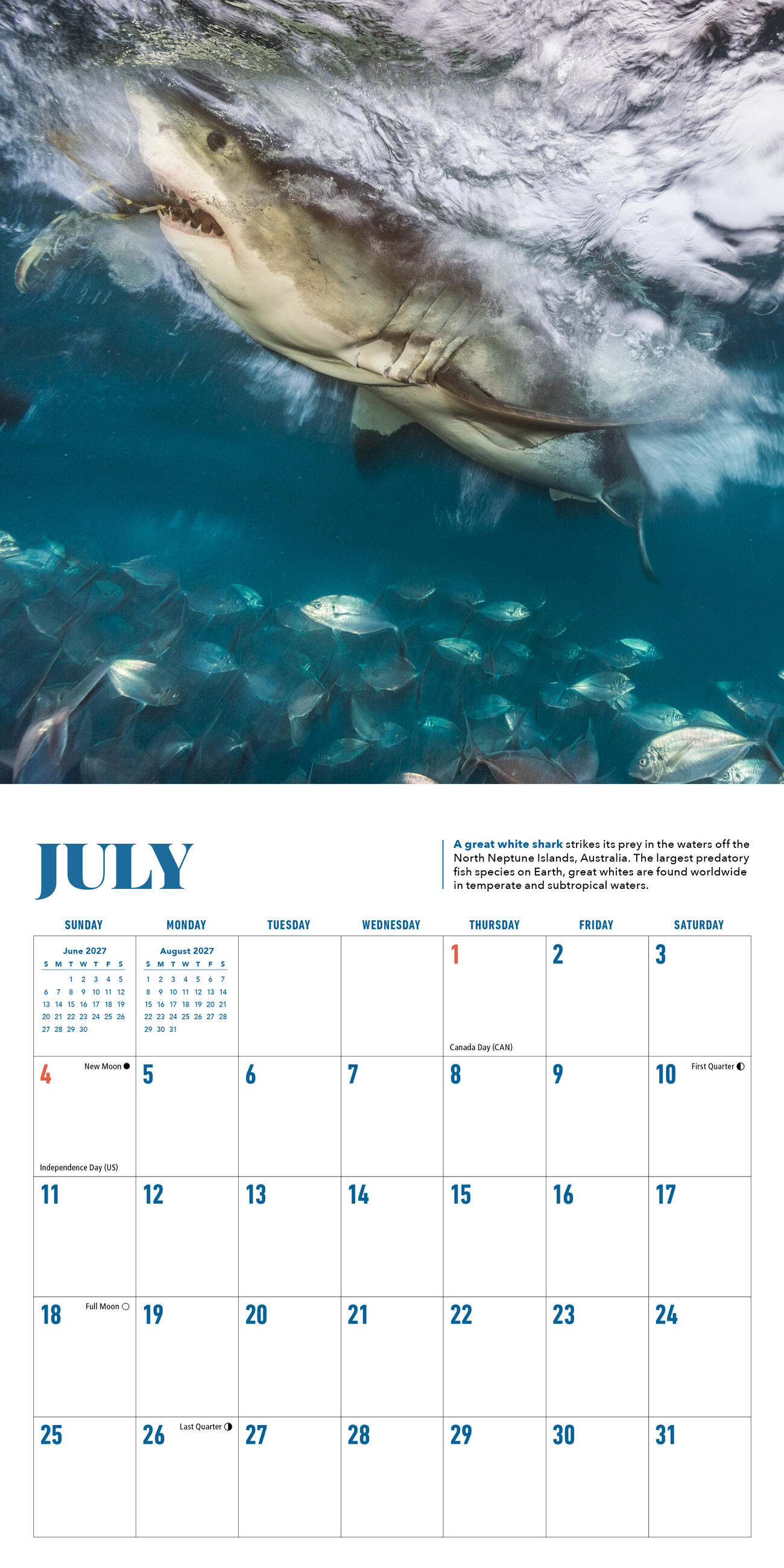 • MINI CALENDAR, BIG IMPACT: Perfect for shark lovers of all ages. The 7″ x 7″ mini size makes it a great fit for cubicles, lockers, and other small spaces.