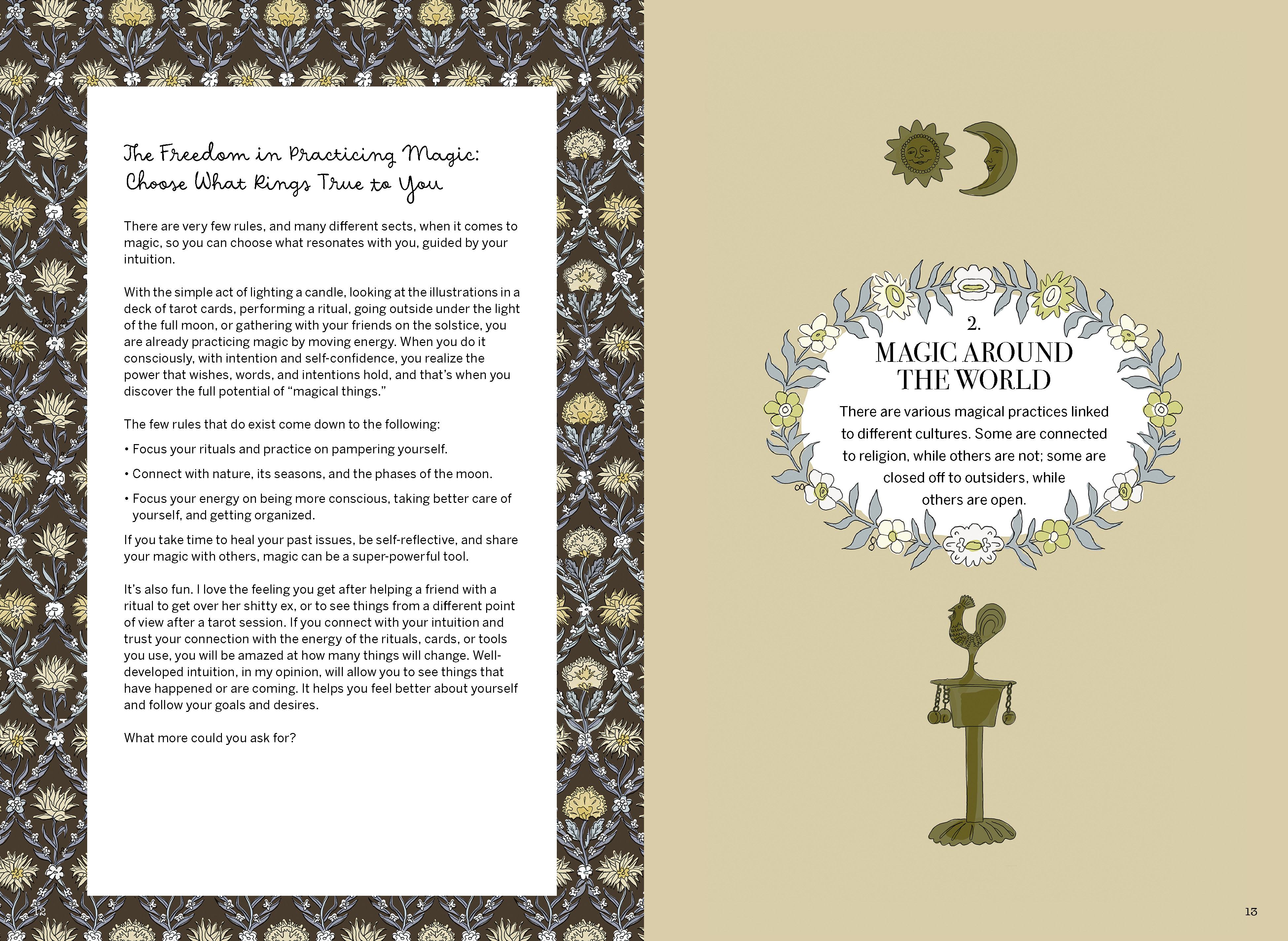 Through the guidance of author Carlota Santos, readers will discover how to harness the magic within themselves and manifest it in their lives. They will learn the energy of each astrological sign, how to set up a sacred space, and how to grow and maintain a magical garden and harness the energy properties of plants and herbs in a spell or ritual. There’s also a guide to using essential stones and crystals (for example, when the moon is in Taurus, summon the powers of rose quartz and sapphire for self-love) as well recipes and rituals of all kinds. Seeking romantic love? Try the Gaelic Beltane ritual for attracting love, which includes a flower bath and candle ceremony. Or strengthen self-reflection and inner brightness with a ritual using white candles, wooden boxes, and laurel and lion’s tooth leaves during the summer solstice celebration of Litha. Jam-packed with fun and easy-to-digest information in a beautiful, gifty package, Magicka is the ultimate resource for magic novices and experts alike.
