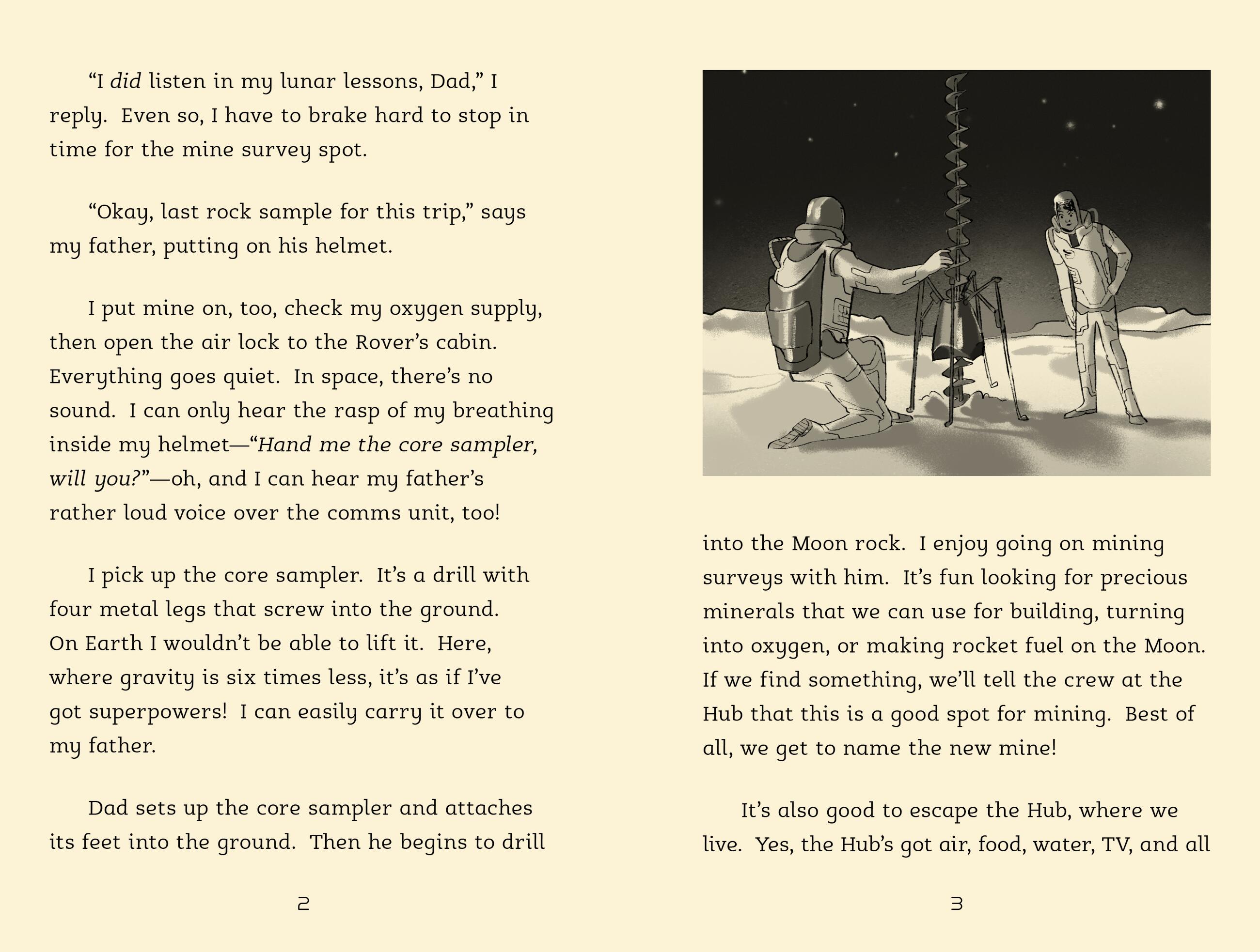 Luna loves living on the moon. She enjoys helping her father—a Moon Miner—on his search for precious minerals and rocks.