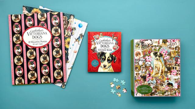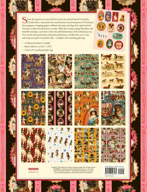 Dogswere celebrated during the Victorian era because they embodied important cultural values of the time: steadfast, loyal, courageous. They became the most popular domestic pets—Dash, a King Charles Spaniel, was considered Queen Victoria’s closest childhood companion—and were pampered just as they are today. Created by artist Cynthia Hart, who layers antique paper ephemera, fresh flowers, ribbons, and vintage objects into lush collages filled with life, color, and energy, these twelve gorgeous sheets of wrapping paper and gift tags will make the wrapping as desirable as the gift inside. Tear out the decorated sheets along the perforations, unfold them, cut to size, and wrap your gift in beautiful style.
