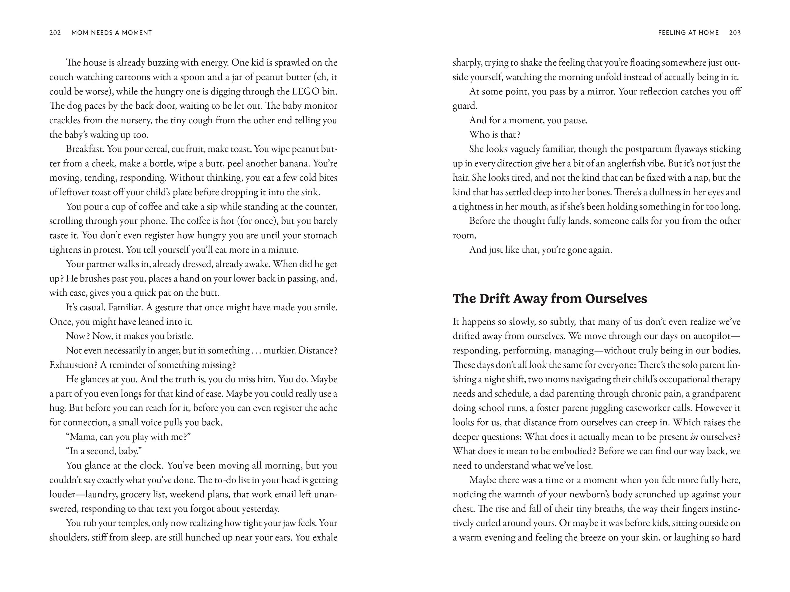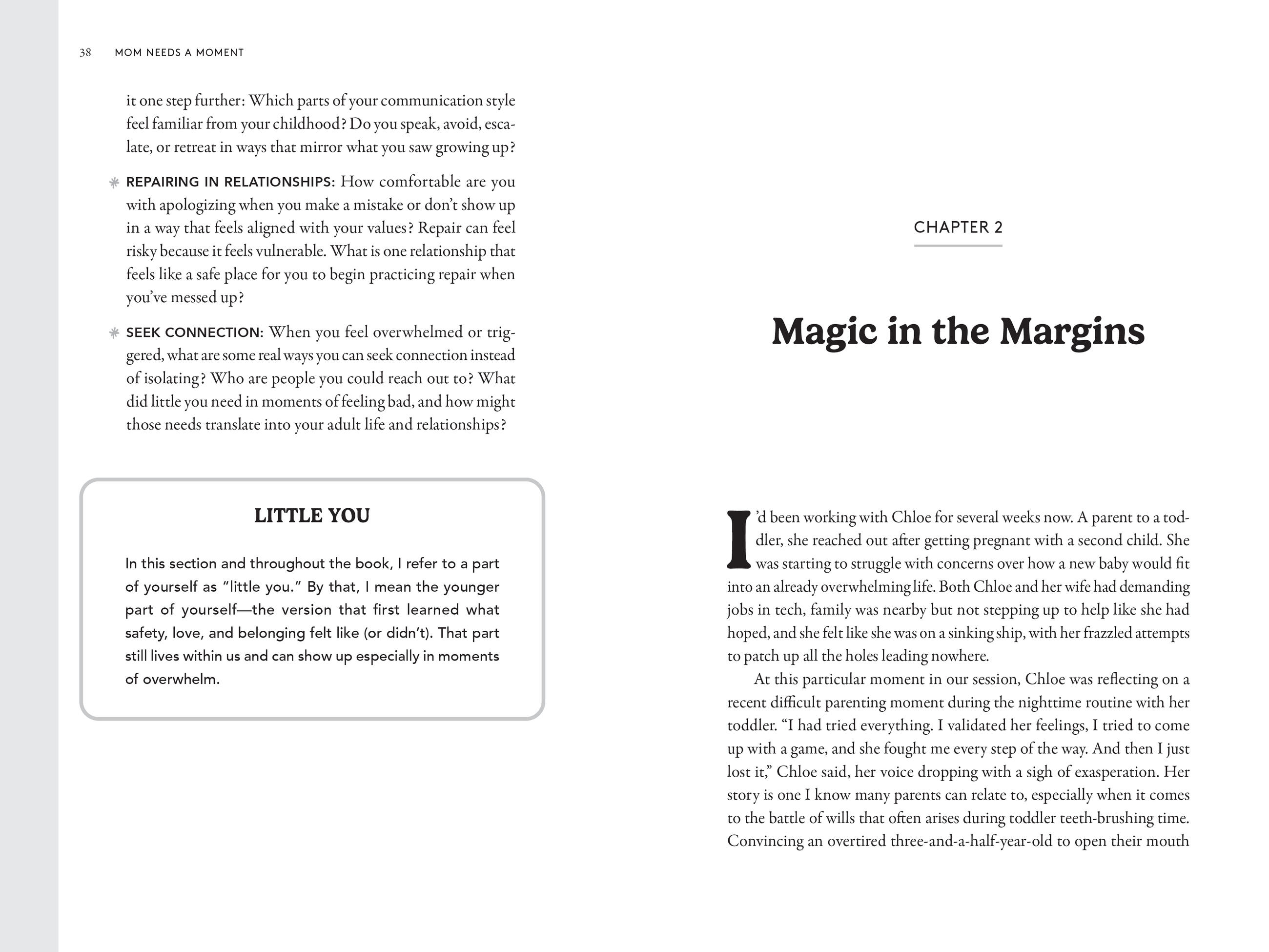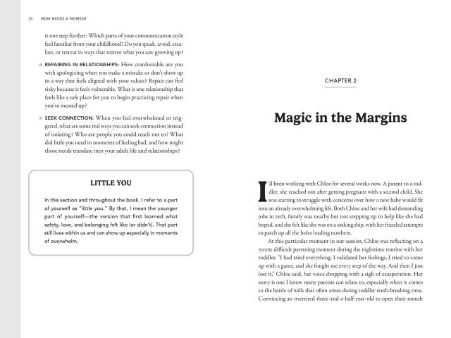 “As a recovering perfectionist and a mom, I’ve never read anything that so clearly named my struggles and made them feel fixable. Mom Needs a Moment is engaging, practical and beautifully organized in a way that helps you connect the dots and take real steps toward becoming a calmer, more regulated version of yourself (and the mom you've always envisioned yourself being).”—Megan McNamee MPH, RDN, #1 New York Times bestselling author and co-founder of Feeding Littles.
