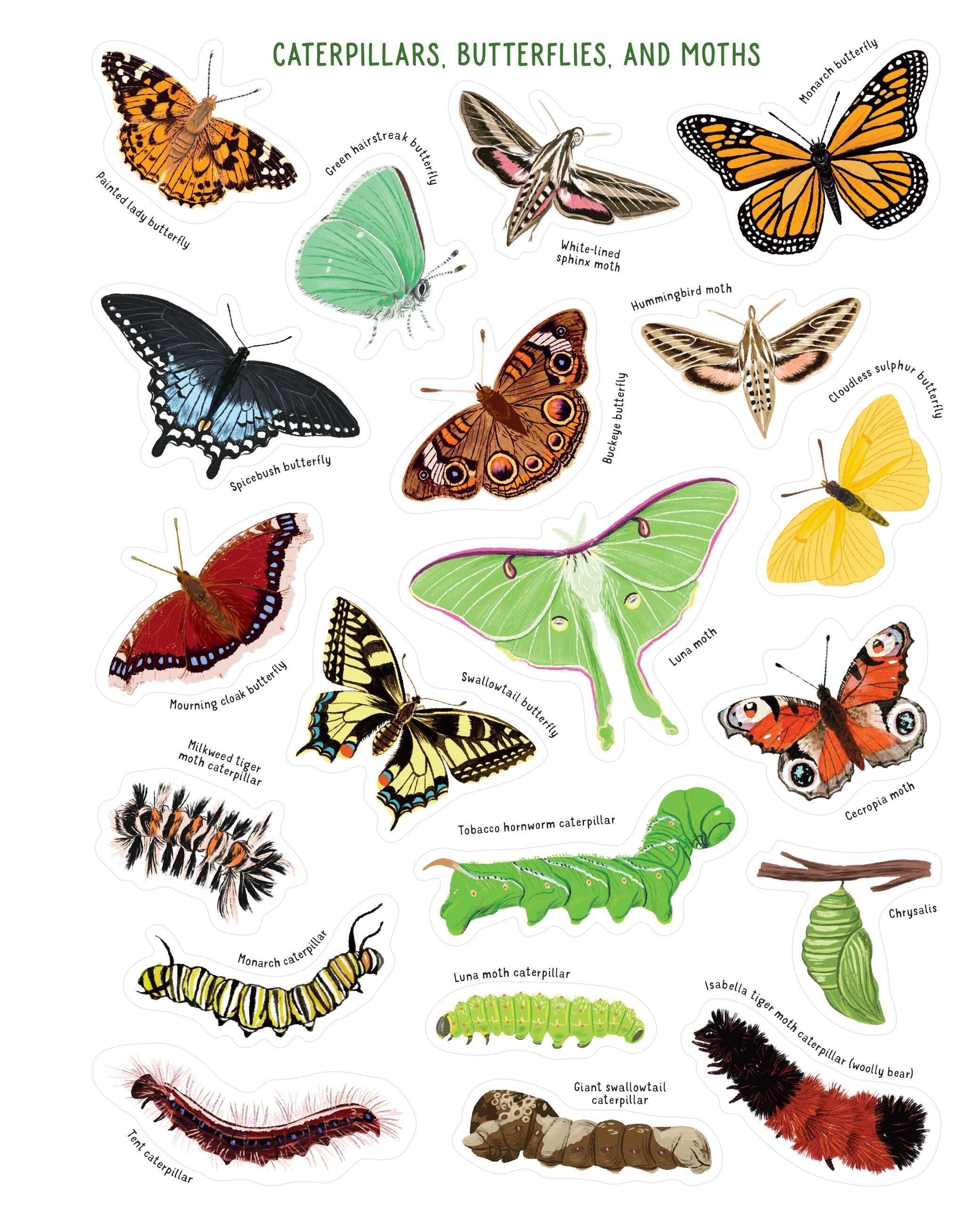 250 scientifically accurate stickers give a realistic look at ladybugs, beetles, ants, spiders, bees, butterflies, dragonflies, caterpillars, and more.