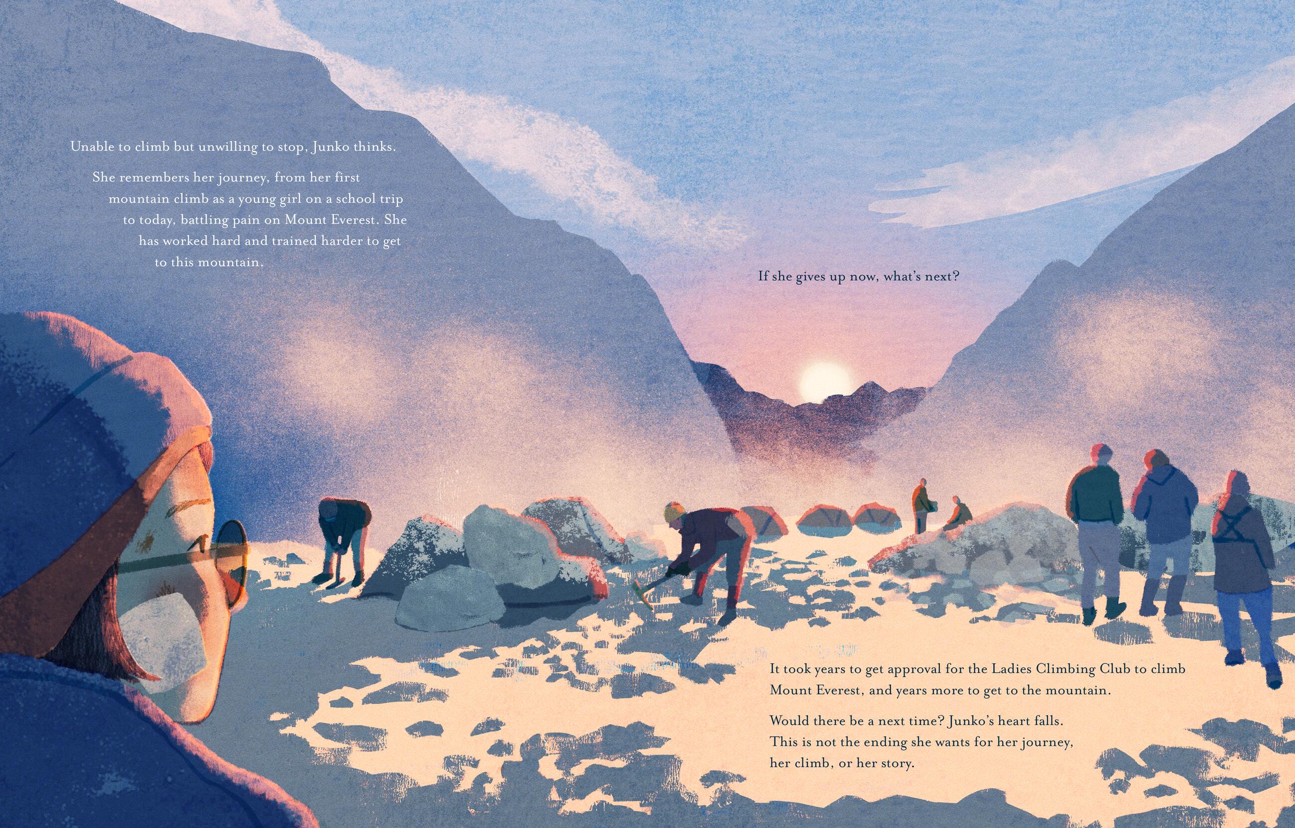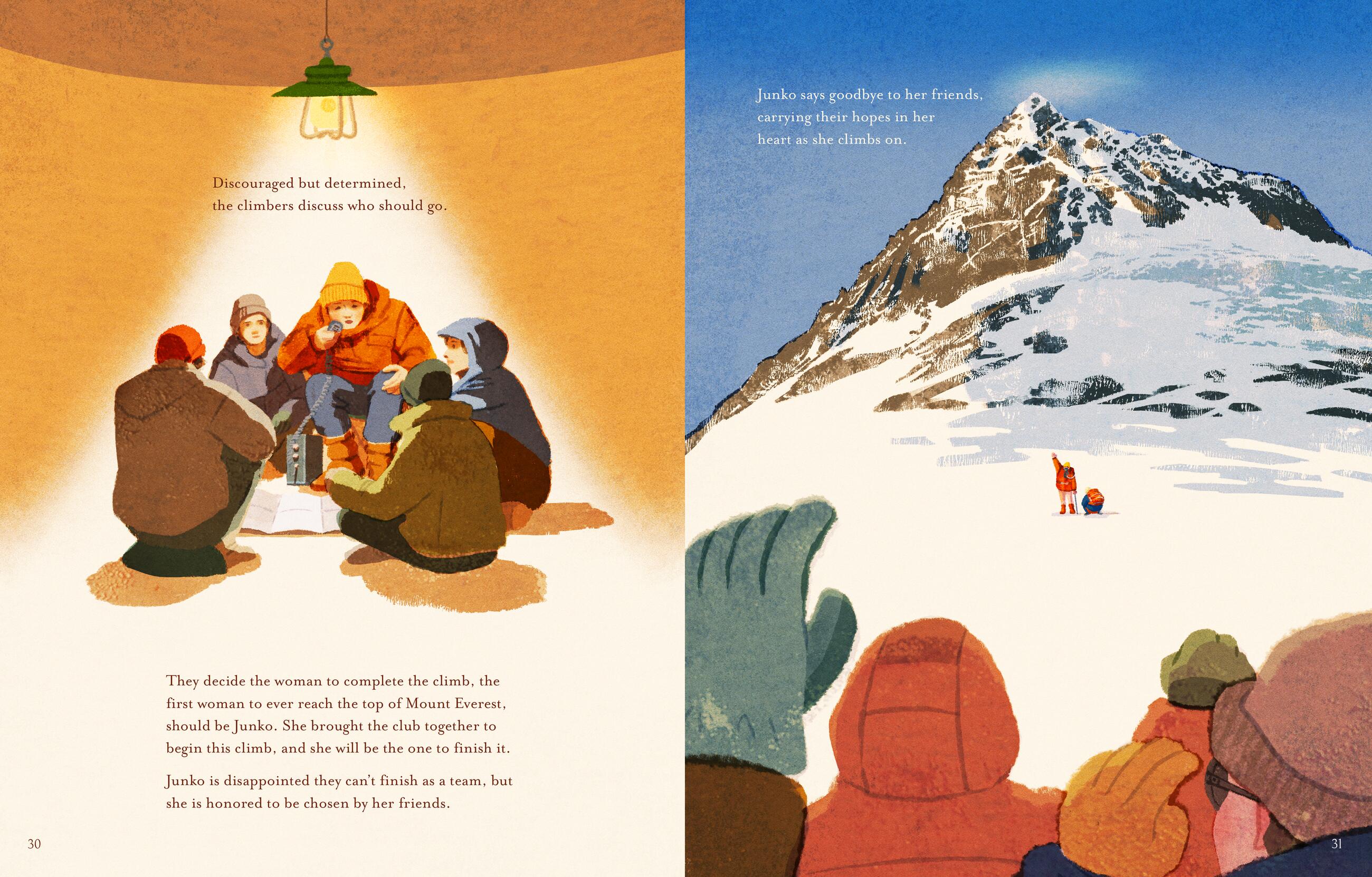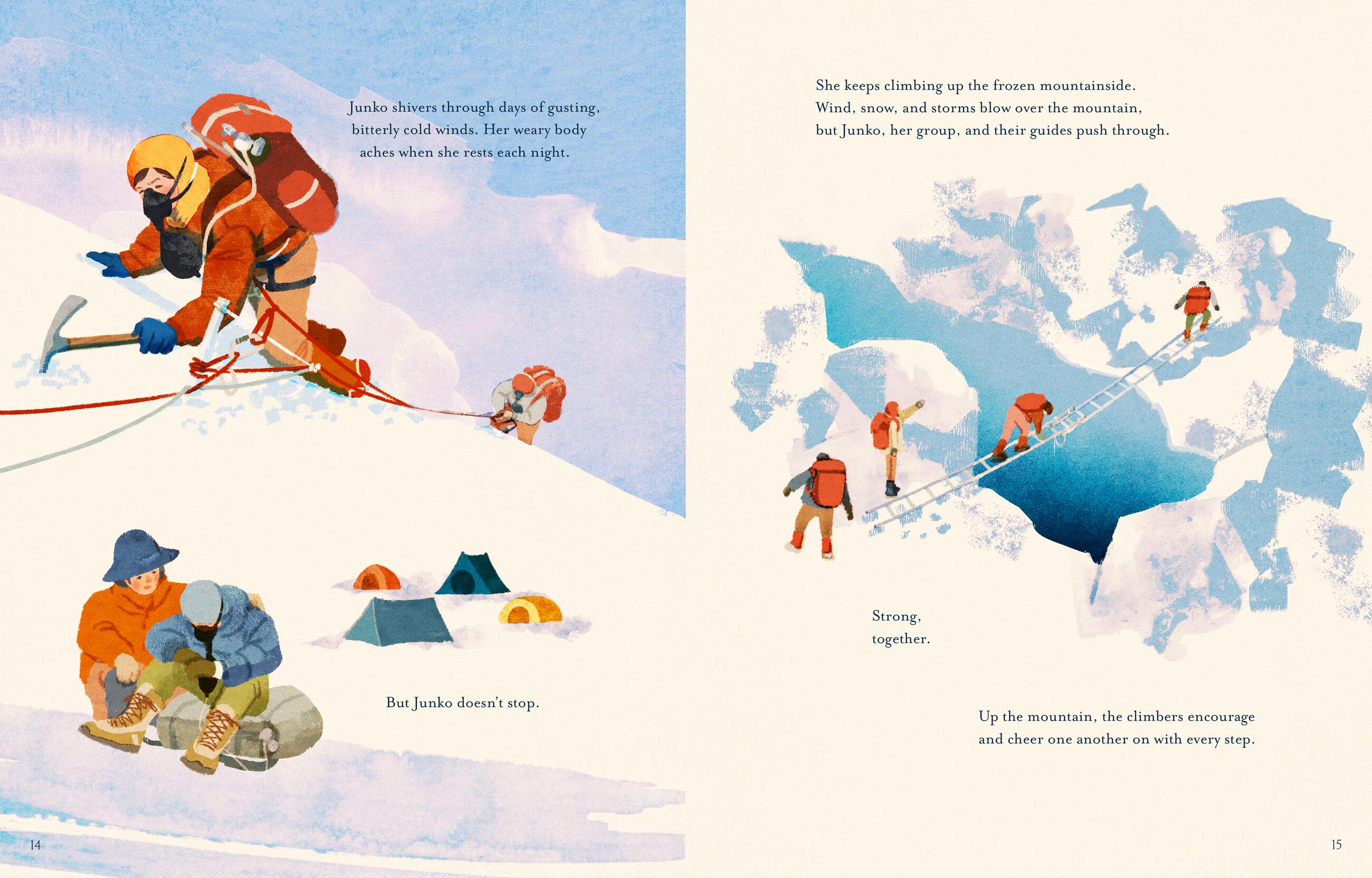 Spring 1975. Fourteen climbers from the Ladies Climbing Club in Japan begin their climb up Mount Everest. Junko Tabei, a mountain climbing pioneer—the woman who formed the group —faces many hardships as she leads them: frigid temperatures, gusting winds, an avalanche, injuries, altitude sickness, and a death-defying ice ridge crossing. Yet she perseveres, and when she reaches the summit of Mount Everest, she becomes the first woman—and the 36th person—to do so! While Junko made history with her trailblazing climb, her path was far from easy. She was small in stature, and often sick as a child. Most climbing clubs of her time were only for men who put up countless obstacles to keep Junko from climbing. But she didn’t let her gender, size, or traditional societal norms stop her. Junko trained hard, formed her own climbing club for women, and became passionate about preserving mountains and wild spaces. Junko’s story shows that determination triumphs over every obstacle, and her climb goes beyond her historical accomplishment—as of June 2020, she has inspired 630 females to follow in her footsteps. Backmatter includes more information about Junko’s life and her remarkable achievements.