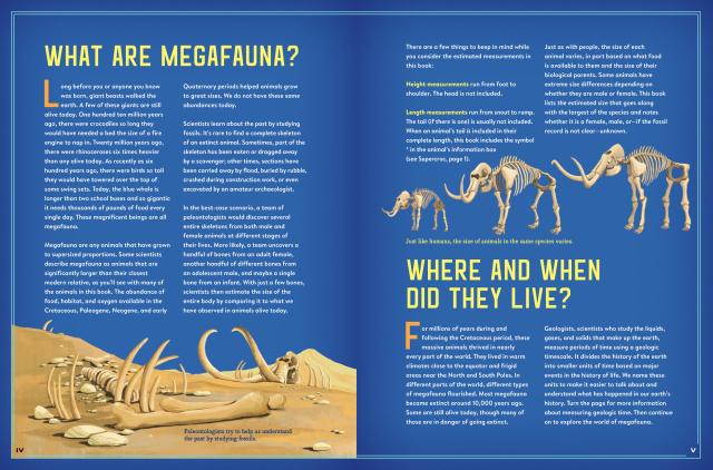 An interactive (complete with gatefolds!), large-format exploration of megafauna, the mostly-extinct class of ginormous animals that thrived during the Pleistocene era after the extinction of the dinosaurs. Meet a giant armored armadillo, a giant sloth, and the three megafauna still found on earth today—African Bush Elephant, Masai Giraffe, and the Blue Whale.
