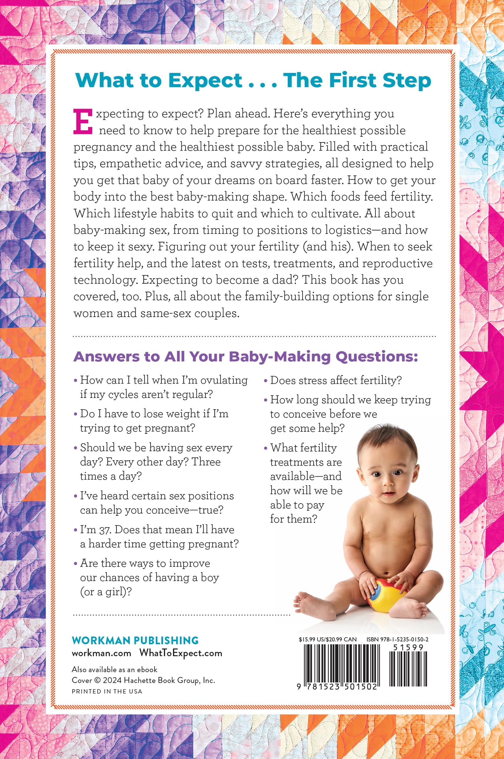 Expecting to expect? Plan ahead. Here’s everything you need to know to help prepare for the healthiest possible pregnancy and the healthiest possible baby. Filled with practical tips, empathetic advice, and savvy strategies, all designed to help you get that baby of your dreams on board faster. How to get your body into the best baby-making shape. Which foods feed fertility. Which lifestyle habits to quit and which to cultivate. All about baby-making sex, from timing to positions to logistics—and how to keep it sexy. Figuring out your fertility (and his). When to seek fertility help, and the latest on tests, treatments, and reproductive technology. Expecting to become a dad? This book has you covered, too. Plus, all about the family-building options for single women and same-sex couples.