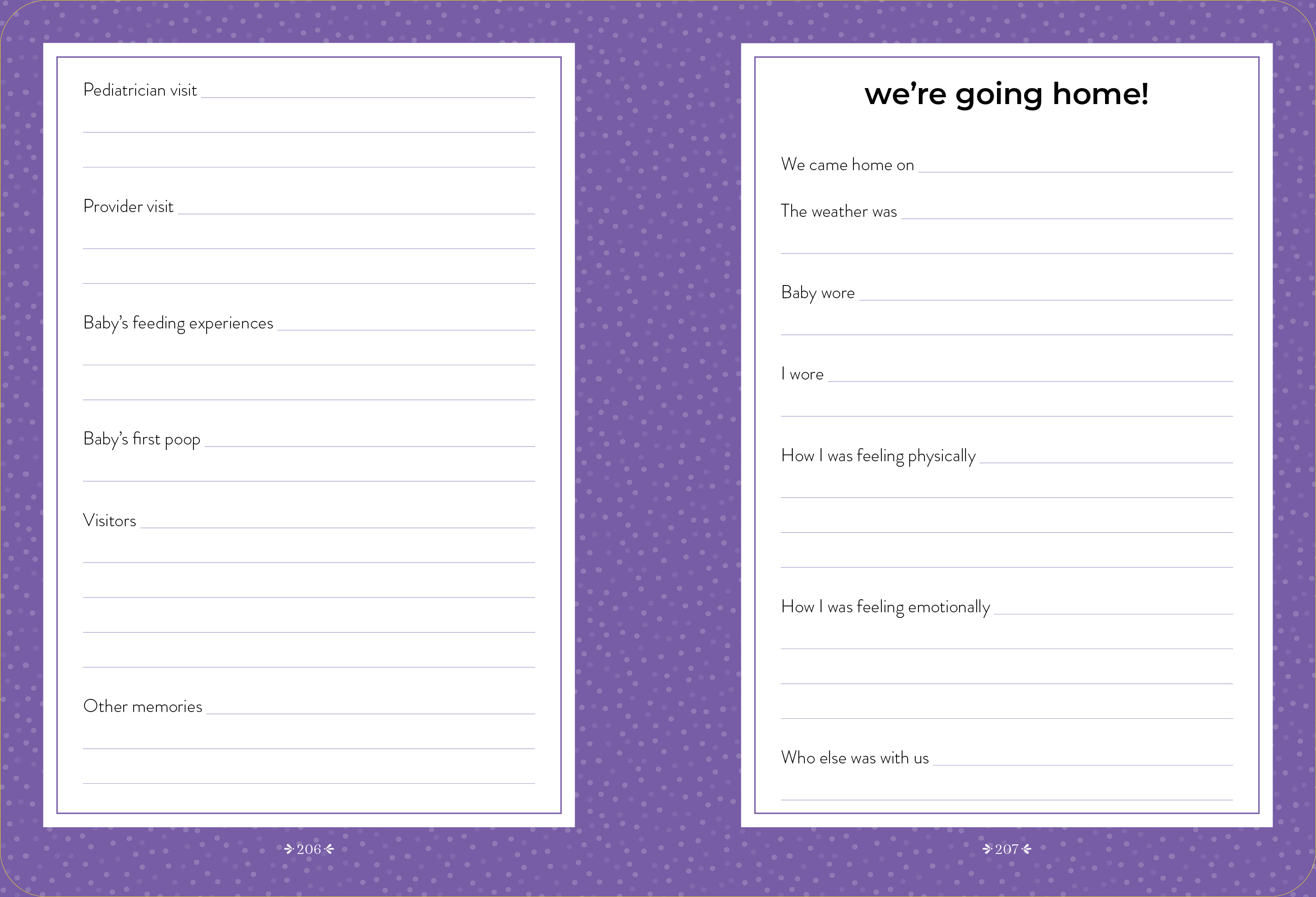 An all-in-one write-in book, filled with prompts, it works as a journal and daily diary to record all those memorable moments, from that positive pregnancy test to those precious ultrasounds, first kick to first contraction to first cuddle. It’s also an organizer, compact enough to toss in your bag, to keep track of provider visits, questions you want to ask the doctor, shopping lists, medications, birthing plans, and so much more. And, finally, it’s a cherished place to write down everything you’ll want to remember about these extraordinary nine months and, after baby arrives, the highs and lows of your “fourth trimester.”