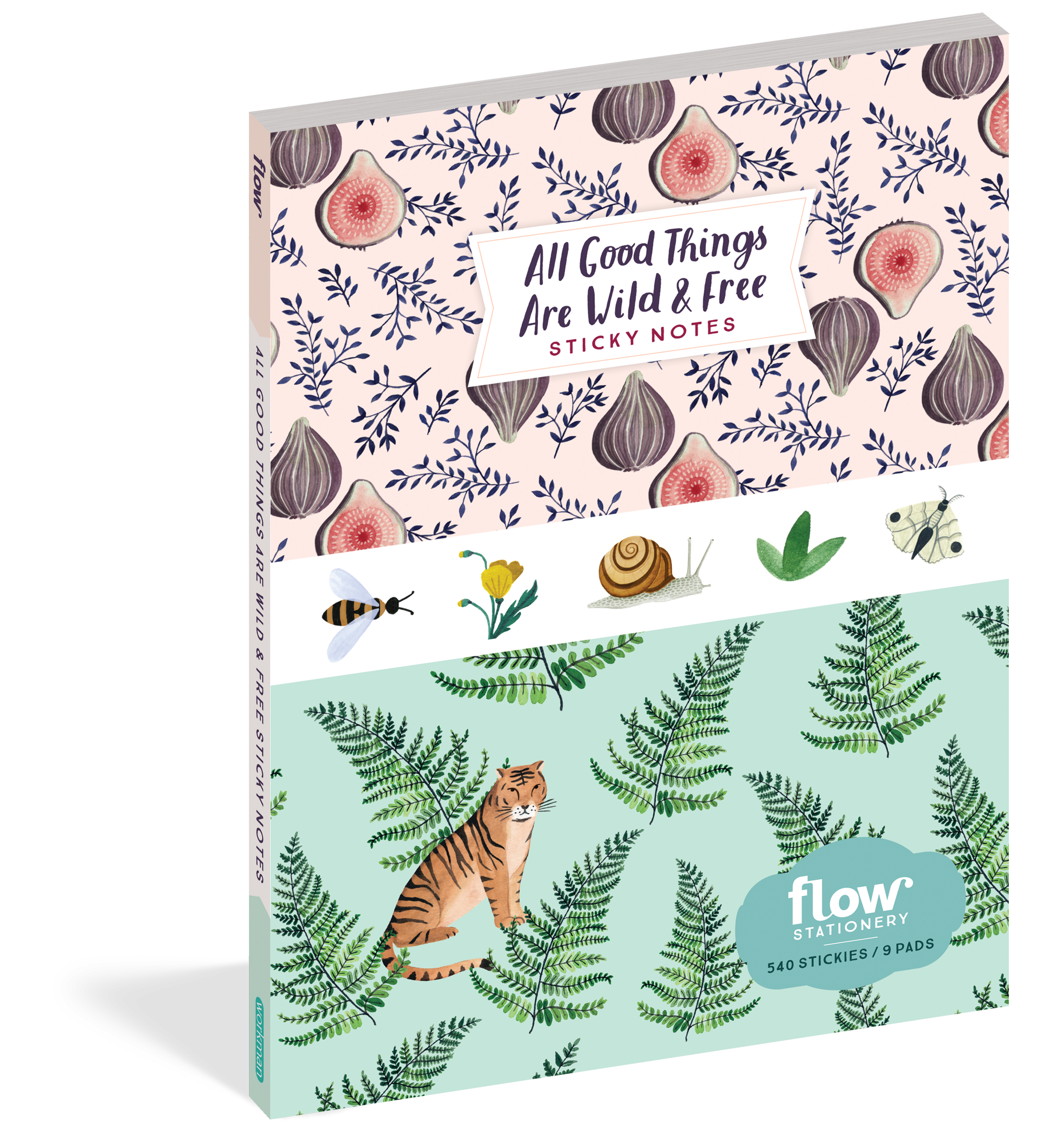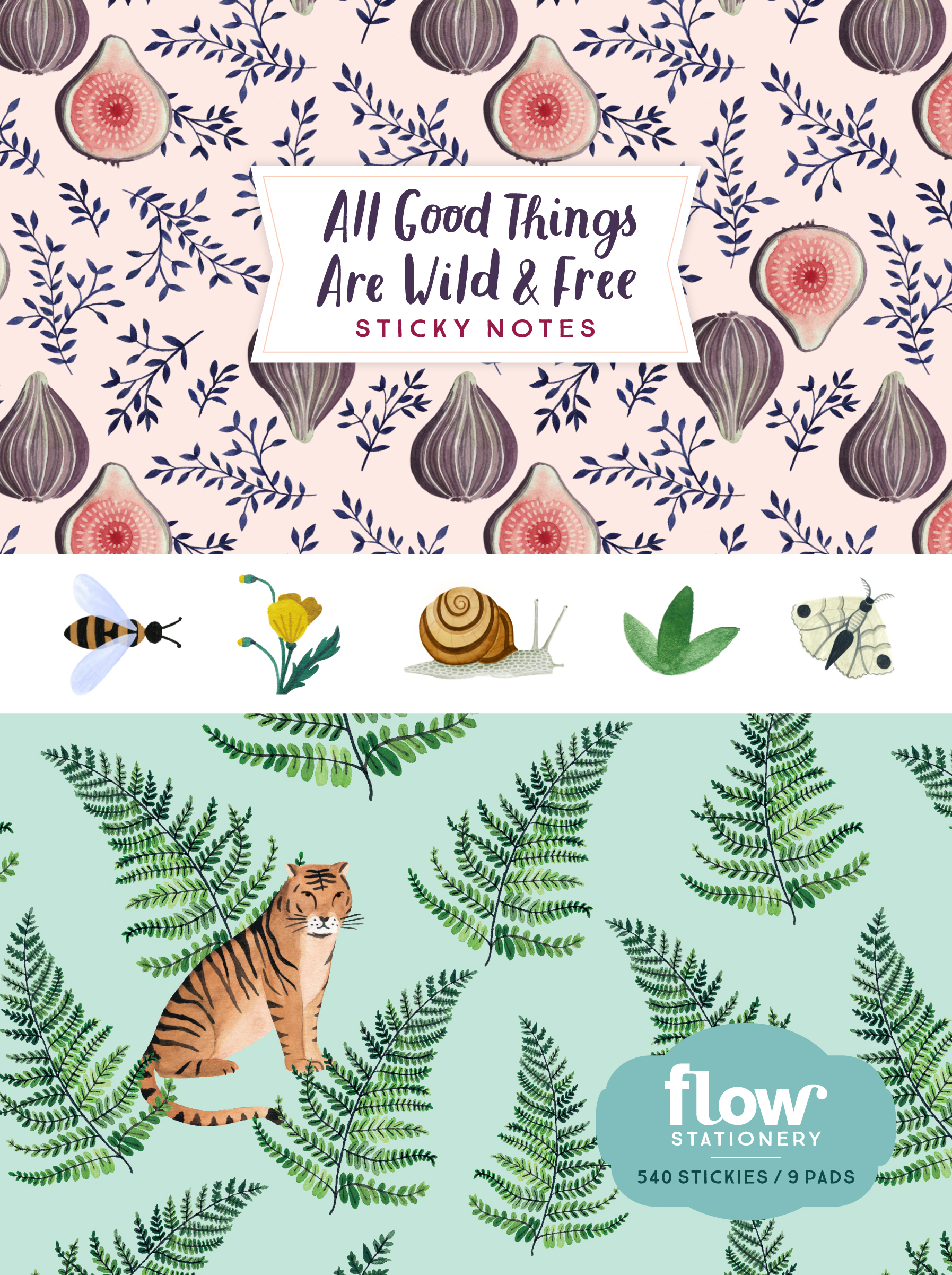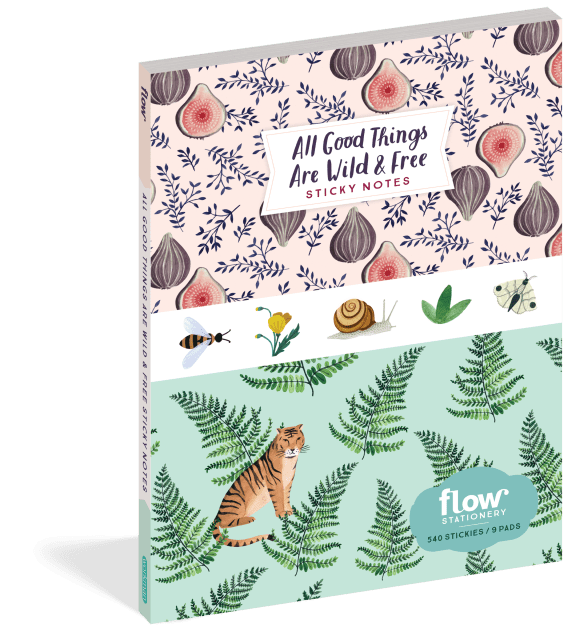 The full All Good Things Are Wild and Free stationery line includes: 1000-piece jigsaw puzzle, sticker book, stationery set, daily tracker, wrapping paper and gift tags, sticky notes, sketchbook, and notebook set.