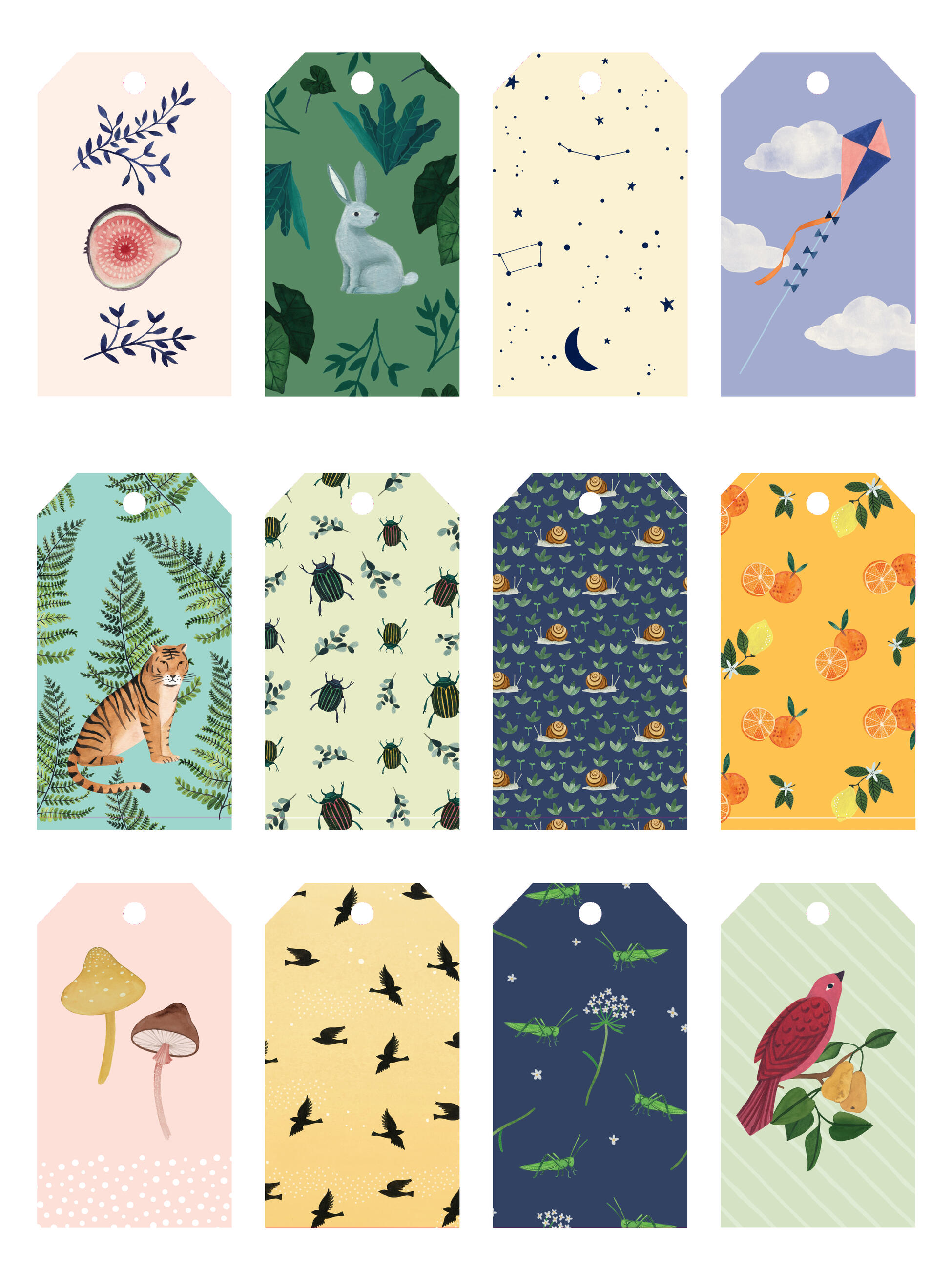 Each colorful illustrated sheet of wrapping paper by Valesca van Waveren is like a gift itself. Her patterns, inspired by the quotation “All good things are wild and free,” from the Henry David Thoreau quotation, remind us of the simple joys of nature: pressed flowers, shiny beetles, sweet figs, noble tigers, and traveling snails. Tear out the decorated sheets along the perforations and unfold them to their full size before wrapping a parcel and affixing a matching gift tag.