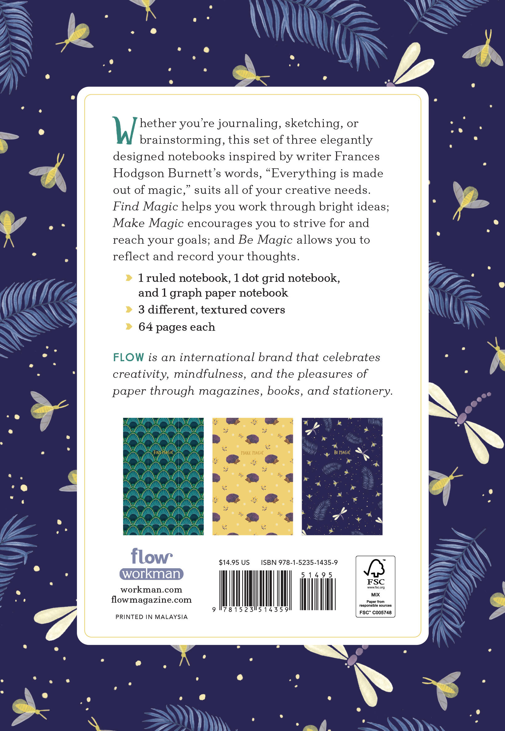Whether you’re journaling, sketching, or brainstorming, this set of three elegantly designed notebooks inspired by writer Frances Hodgson Burnett’s words, “Everything is made out of magic,” suits all of your creative needs. Find Magic helps you work through bright ideas; Make Magic encourages you to strive for and reach your goals; and Be Magic allows you to reflect and record your thoughts.