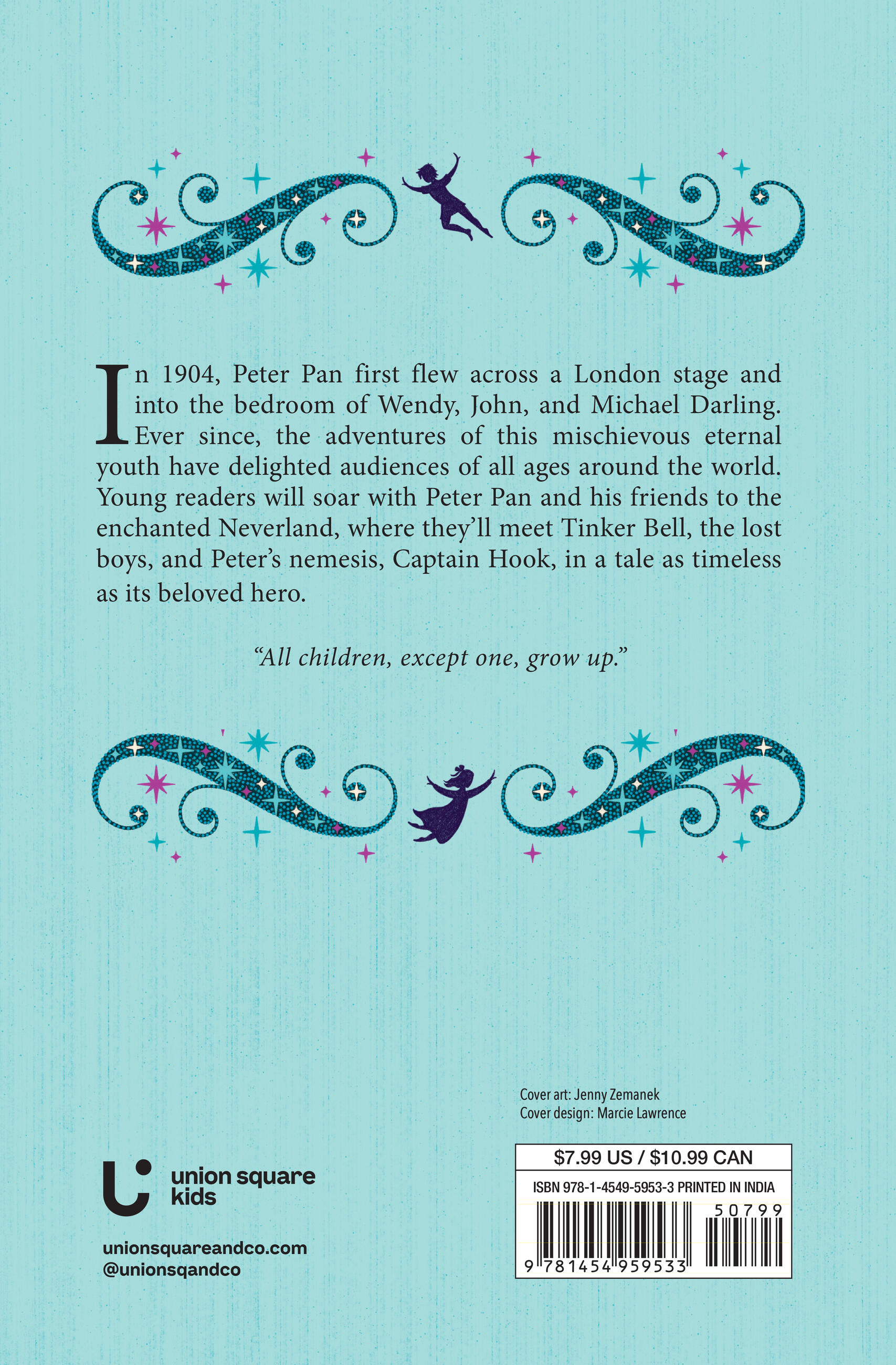 In 1904, Peter Pan first flew across a London sky and into the bedroom of Wendy, John, and Michael Darling. Ever since, this perpetual youth has continued to delight children of all ages. Young readers will happily soar with him and his friends to enchanted Neverland, where they’ll meet Tinkerbell, the Lost Boys, and Peter’s famous nemesis, Captain Hook. It’s a tale as ageless as its beloved hero.