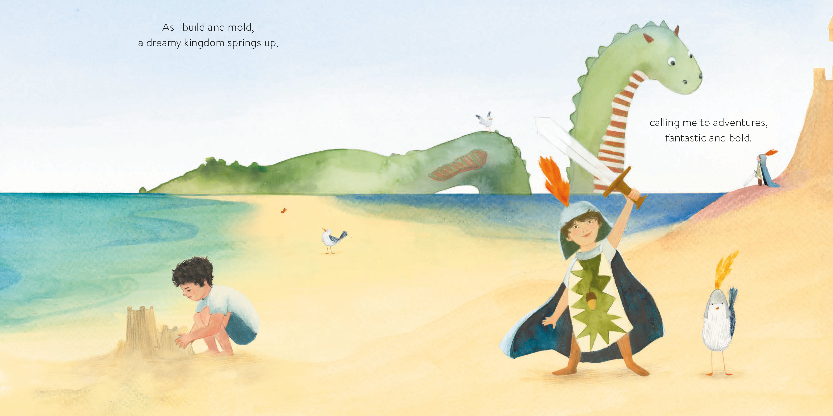On an ambling walk, a child discovers they hold the promise of larger worlds—forests and meadows—in the palm of their hand. An acorn becomes a tree within a woodland wonderland. A grain of sand becomes a sandcastle in a kingdom of imagination. By exploring nature’s tiniest details, they learn even small things, including them, contain infinite potential.