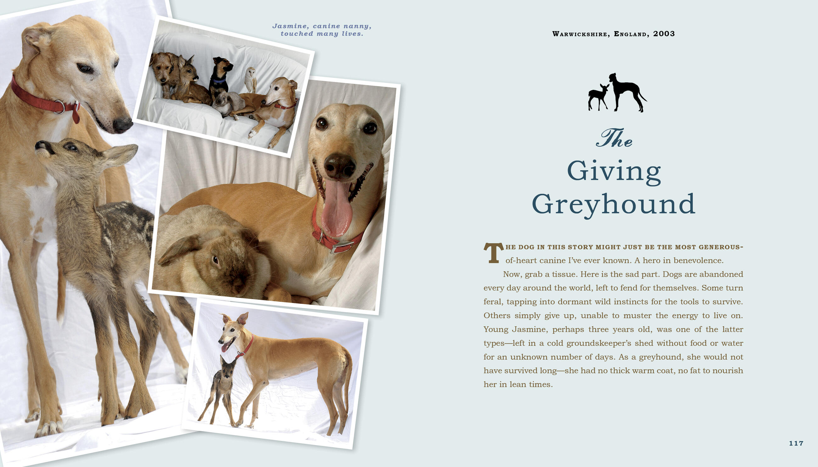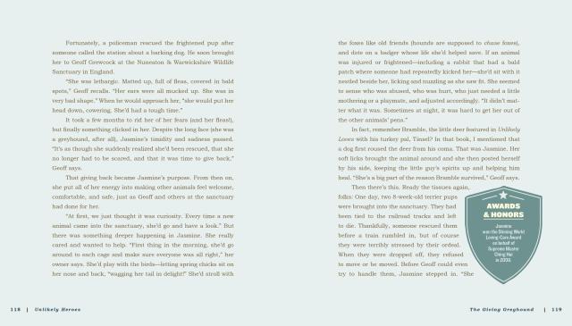 And there are compelling stories of heroic resilience: like Naki’o, the abandoned puppy who lost all four paws to frostbite but found the grit not only to overcome that terrible hardship but to reclaim the joy of life—that’s him, smiling on the cover of the book.