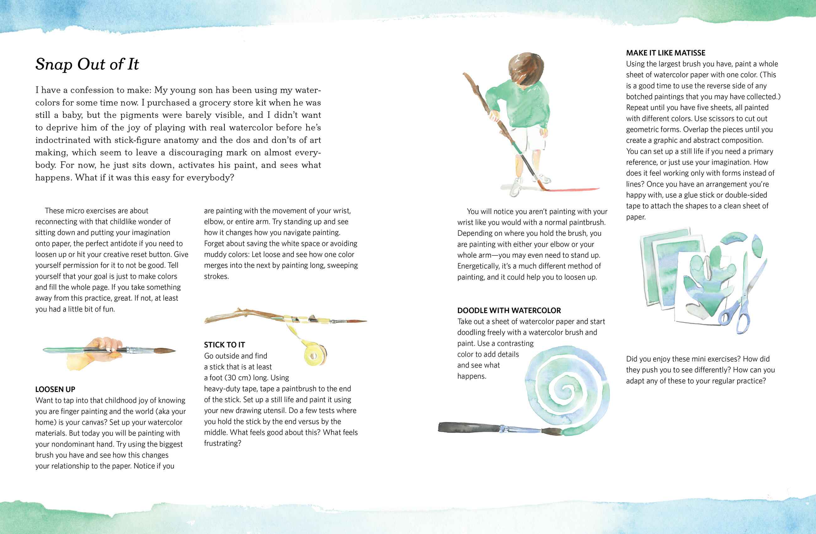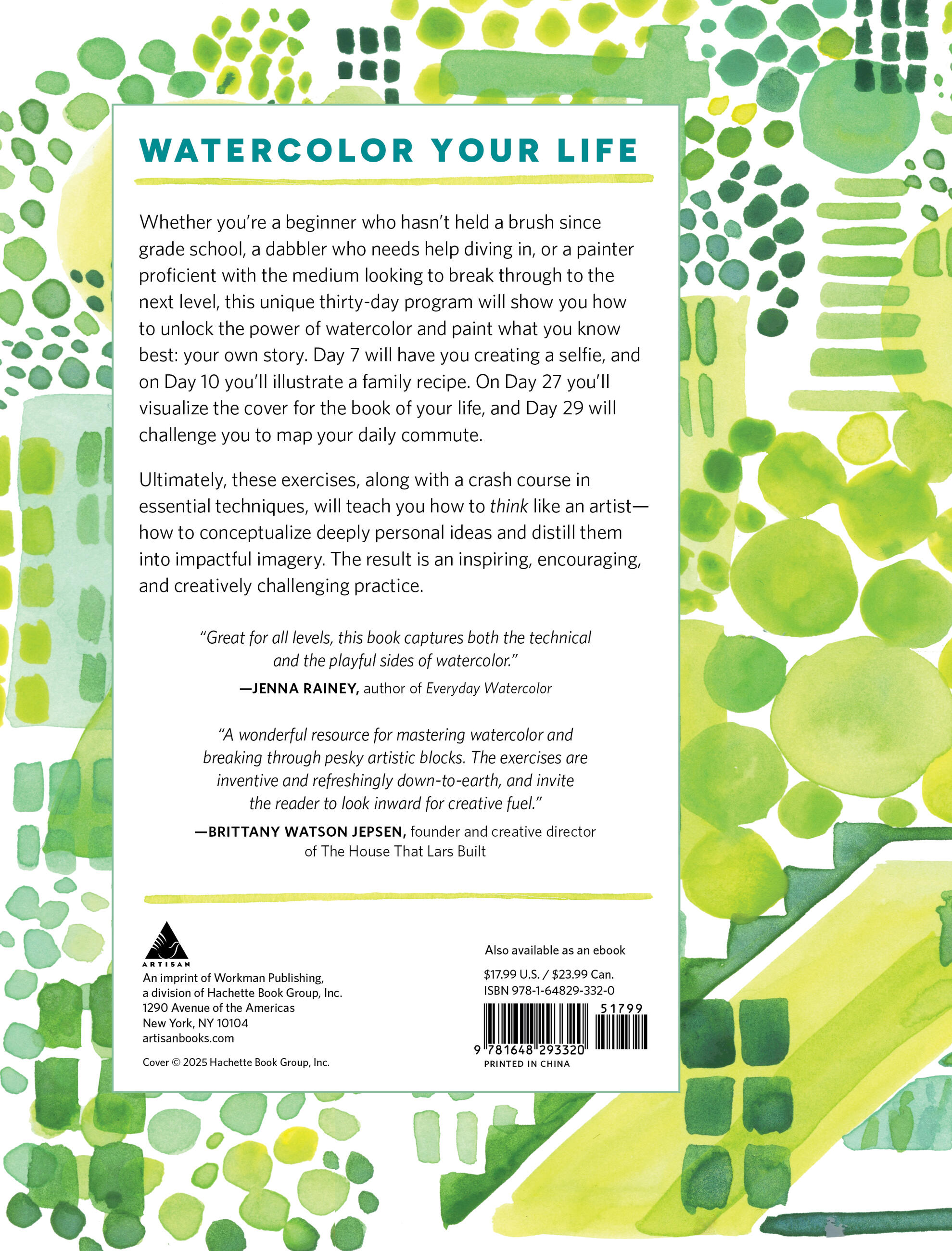 Unlike most watercolor instruction books based on rote copying of classic watercolor subjects, Thinking in Watercolor encourages readers to use art as a means of self-expression. Author and in-demand illustrator Jessie Kanelos Weiner encourages readers through foundational watercolor techniques and shows how to adapt them to share their personal experiences over the course of several days. On Day 10 they’ll illustrate a family recipe; on Day 14 they’ll go on a scavenger hunt through a local museum—and so forth.