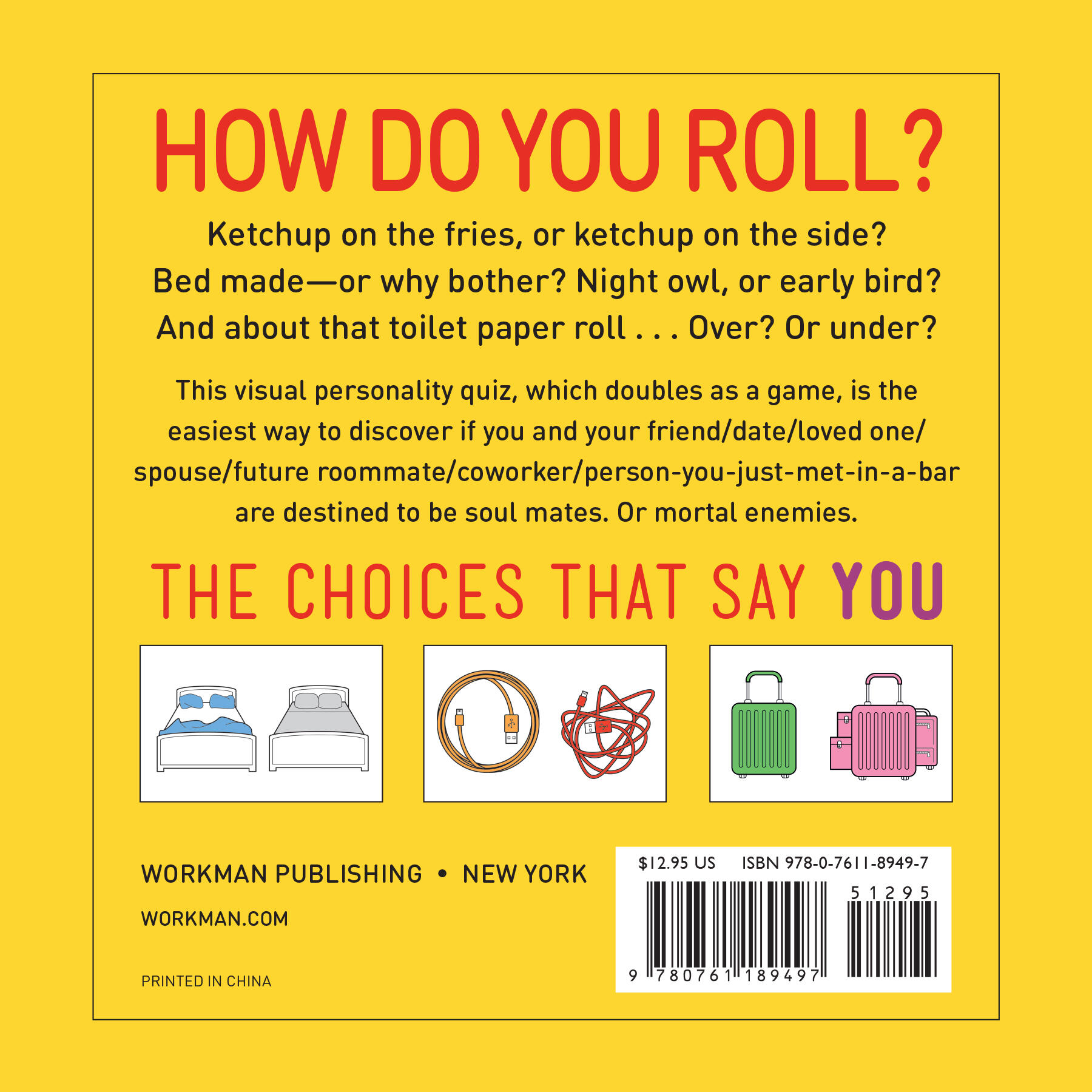 Ketchup on the fries, or ketchup on the side? Bed made—or why bother? Night owl, or early bird? And about that toilet paper roll . . . Over? Or under? This visual personality quiz, which doubles as a game, is the easiest way to discover if you and your friend/date/loved one/spouse/future roommate/coworker/person-you-just-met-in-a-bar are destined to be soul mates. Or mortal enemies.