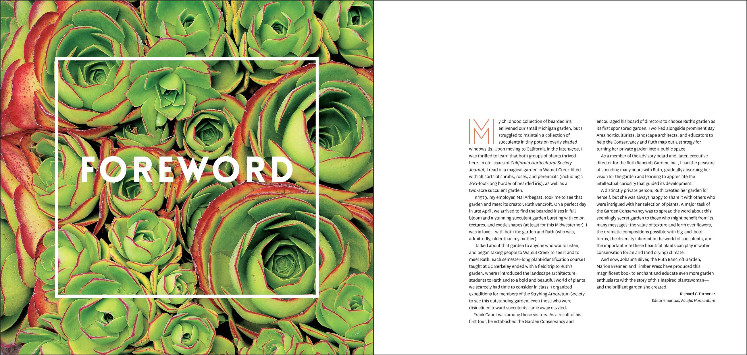 “Ruth Bancroft’s garden is a rare combination of an artist’s vision and a meticulous collector’s passion—an invaluable resource that showcases the rich textures, structures, and colors of dry plants.” —Andrea Cochran FASLA, principal of Andrea Cochran Landscape Architecture