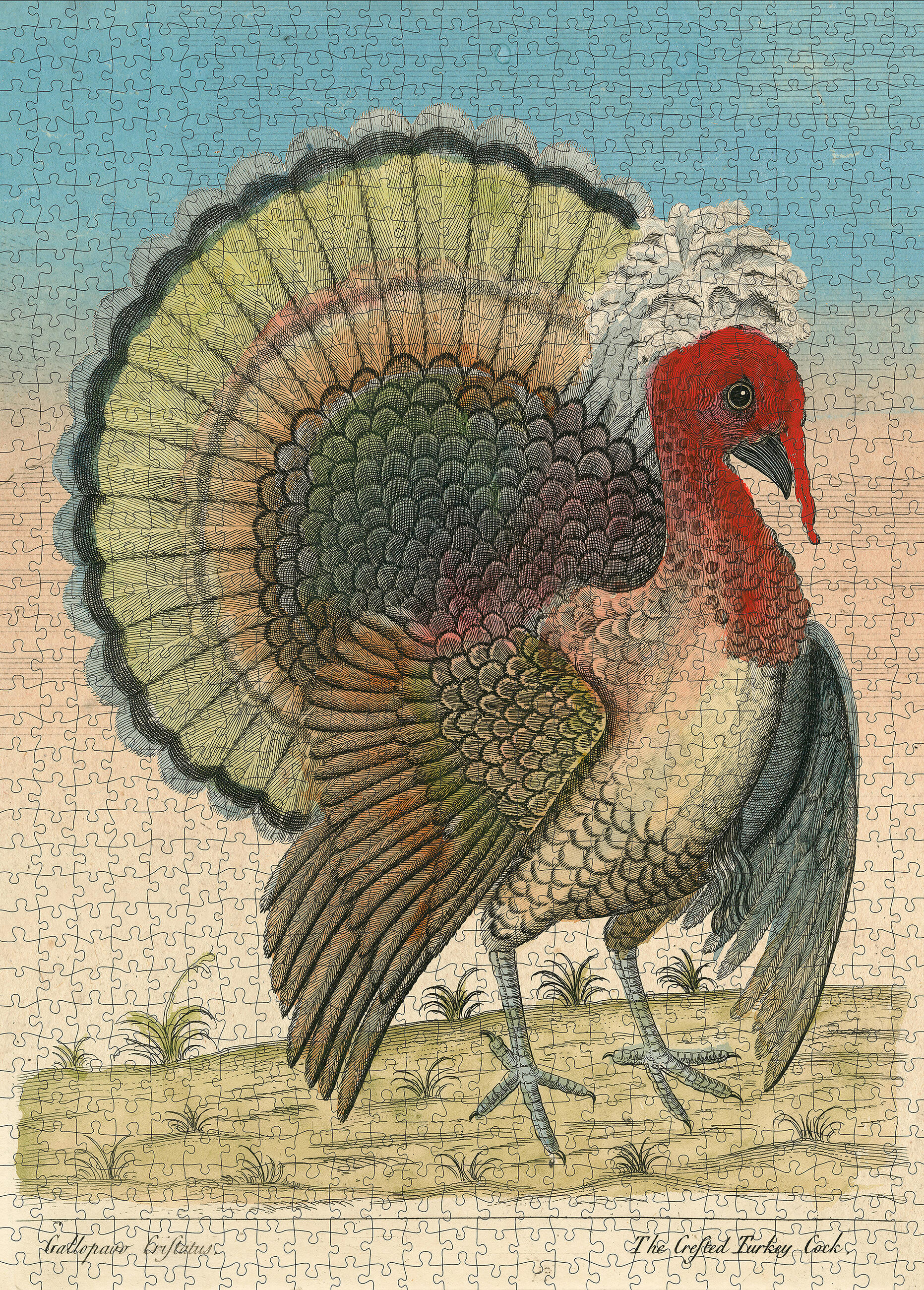 It’s time for a new Thanksgiving tradition. After the pies, after the contented sighs, keep the reverence for the day going with this singularly stunning puzzle. Straight from the collection of John Derian, the artist and designer whose work with printed images of the past transports the viewer to another time and place, Crested Turkey is a nineteenth-century chromolithographic portrait that confirms the wonder and wisdom behind Benjamin Franklin’s famous remark that in comparison with the bald eagle, the wild turkey is a much more respectable and courageous creature. And so handsome too!