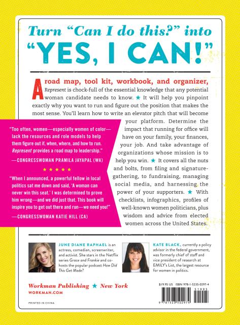 Join the growing wave of women leaders with Represent, an energetic, interactive, and inspiring step-by-step guide showing how to run for the approximately 500,000 elected offices in the US. Written with humor and honesty by writer, comedian, actress, and activist June Diane Raphael and Kate Black, former chief of staff at EMILY’s list, Represent is structured around a 21-point document called “I’m Running for Office: The Checklist.” Doubling as a workbook, Represent covers it all, from the nuts and bolts of where to run, fundraising, and filing deadlines, to issues like balancing family and campaigning, managing social media and how running for office can work in your real life. With infographics, profiles of women politicians, and wisdom and advice from women in office, this is a must-own for any woman thinking of joining the pink wave.