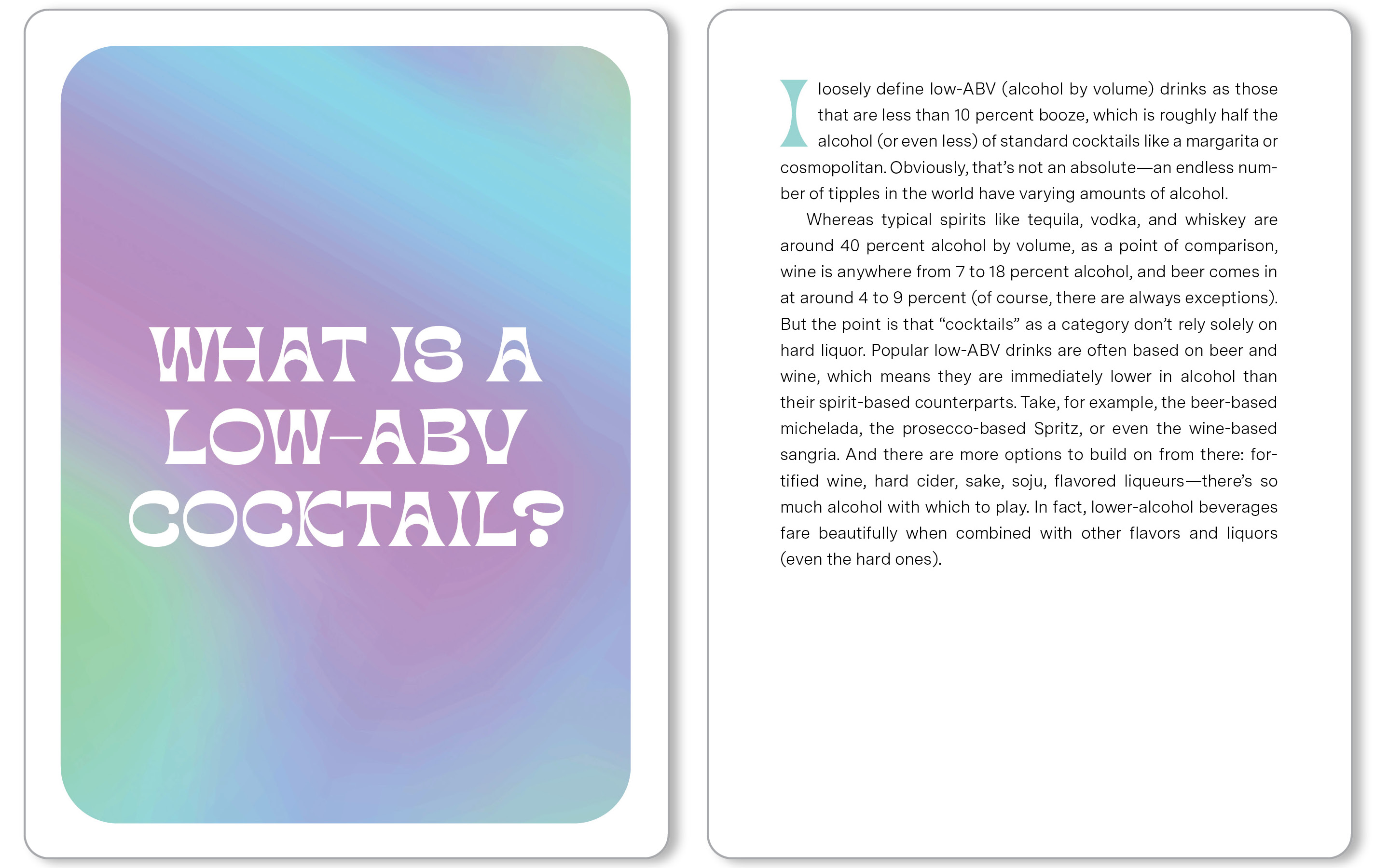 Here are 50 cards that help you set up your low-ABV bar and show you how to create 40 low- and no-alcohol drinks that are perfect for enjoying everyday and special occasions alike. Using beer, wine, cider, sake, sherry, and vermouth, plus a variety of amari and other liqueurs, the recipes come from bartenders all over the country who are passionate about creating craft cocktails.