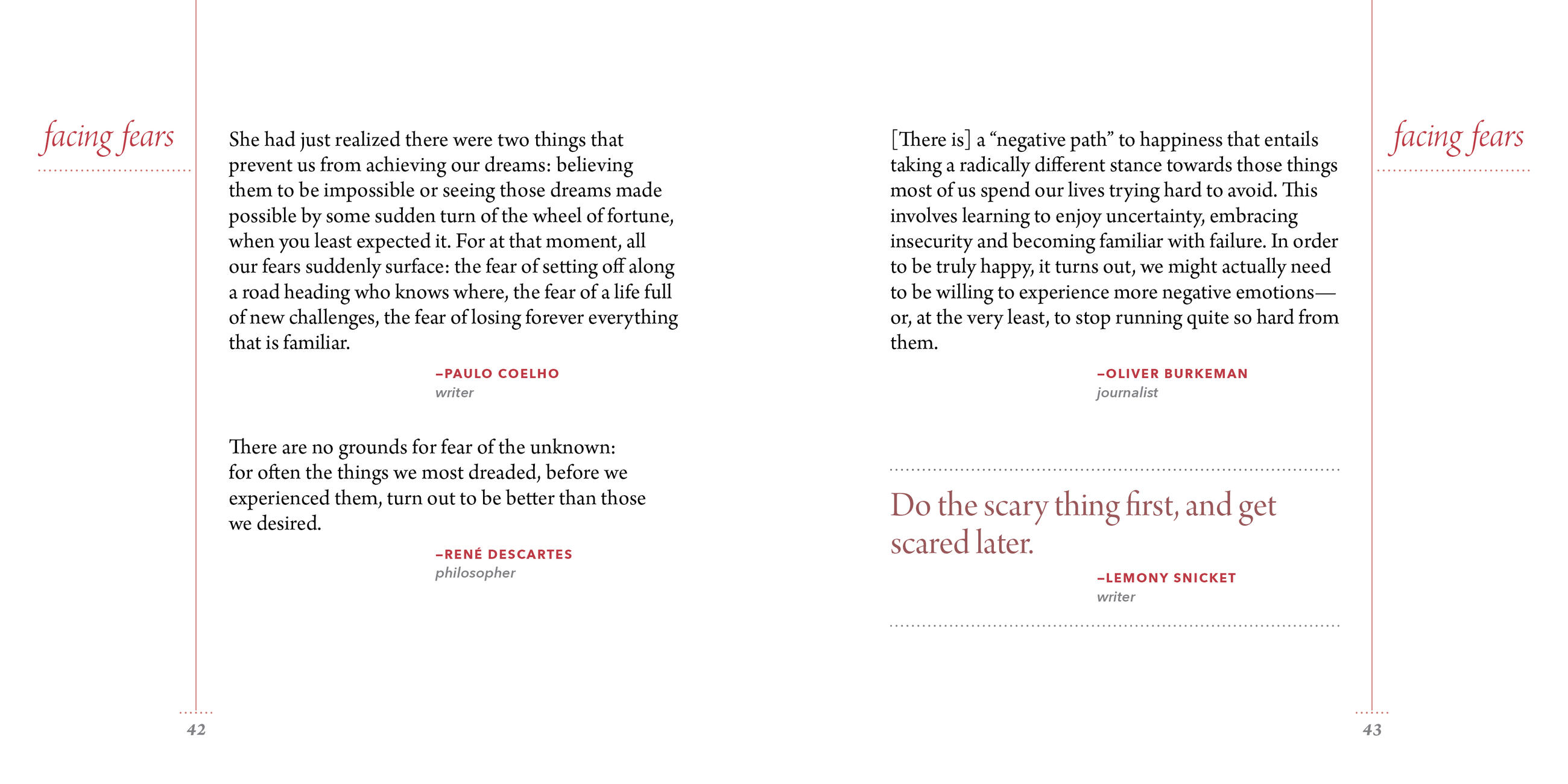 Exciting. But often painful. Exhilarating, but unsettling. Clarifying. Bewildering. Unpredictable, and yet inevitable. And usually all of those things at the same time. Like it or not, change happens, and when it does, here is a little book that offers true support—a collection of very wise words by very changed people who know just how you feel.