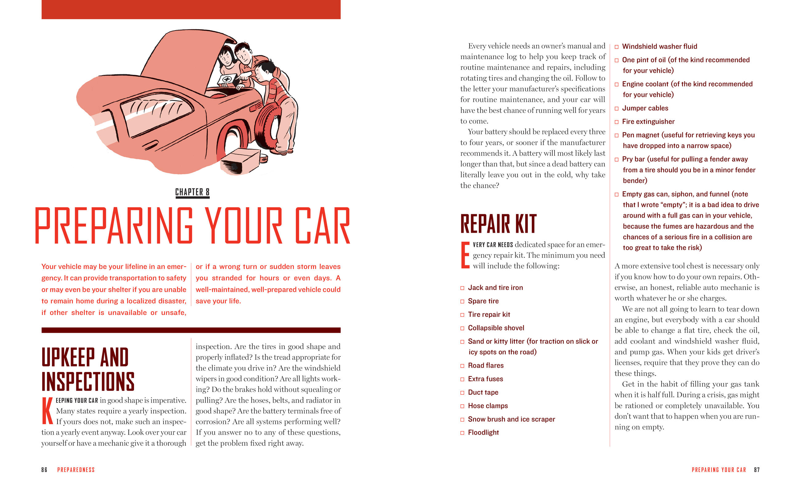 With the assumption that "many of us have a false sense of security... assuming that technology will prevail or that some government agency will bail us out in a crisis," this extensive guide gives detailed, down-to-earth advice on what to do when disaster strikes, be it a house fire, an ice storm or biological terrorism. Aided by charmingly retro illustrations vaguely reminiscent of a 1940s air raid brochure, Harrison (Another Place at the Table) presents her "OAR" system for preparedness—organizing, acquiring and rotating supplies—and techniques to safely and even comfortably survive any kind of emergency. She shows how to prepare for a short-term crisis: building a supply of food and water; preparing first aid and evacuation kits; planning communication and a family meeting place in times of crisis. She also presents long-term strategies for self-sufficiency: "eliminating debt and securing a supply of cash in your home"; planting a garden, canning food and making cheese; replacing an inefficient fireplace with a woodstove; building a solar oven. Harrison shows that learning to do it yourself, besides providing some security in an increasingly insecure world, brings less obvious but perhaps equally important benefits: "an incredible sense of self-sufficiency and independence." And pointing out that family preparedness can build community, she reminds readers, "crisis can bring out the best in people, or the worst. Strive to be one of the good guys." (2008)New York Times