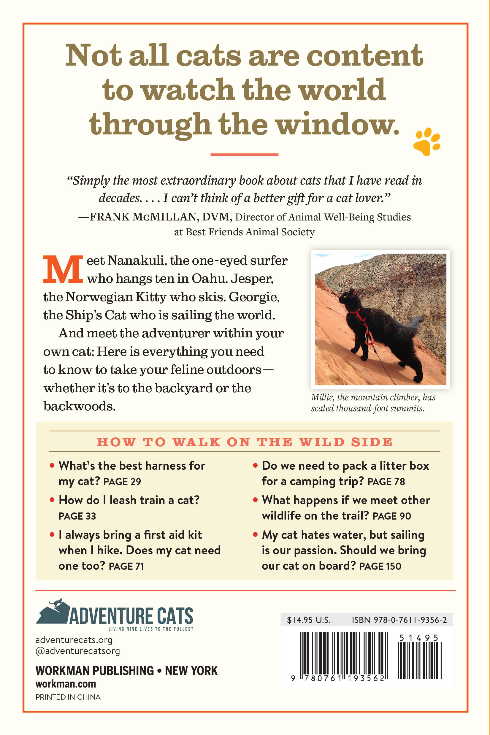 Just when you thought you knew all there was to know about cats comes the ultimate—and unexpected—guide to taking your cat into the wild. Here are cats walking on a leash. Cats hiking on a leash. Cats tramping through snow. Cats camping. Cats kayaking, canoeing, even surfing—yes, cats who love water.