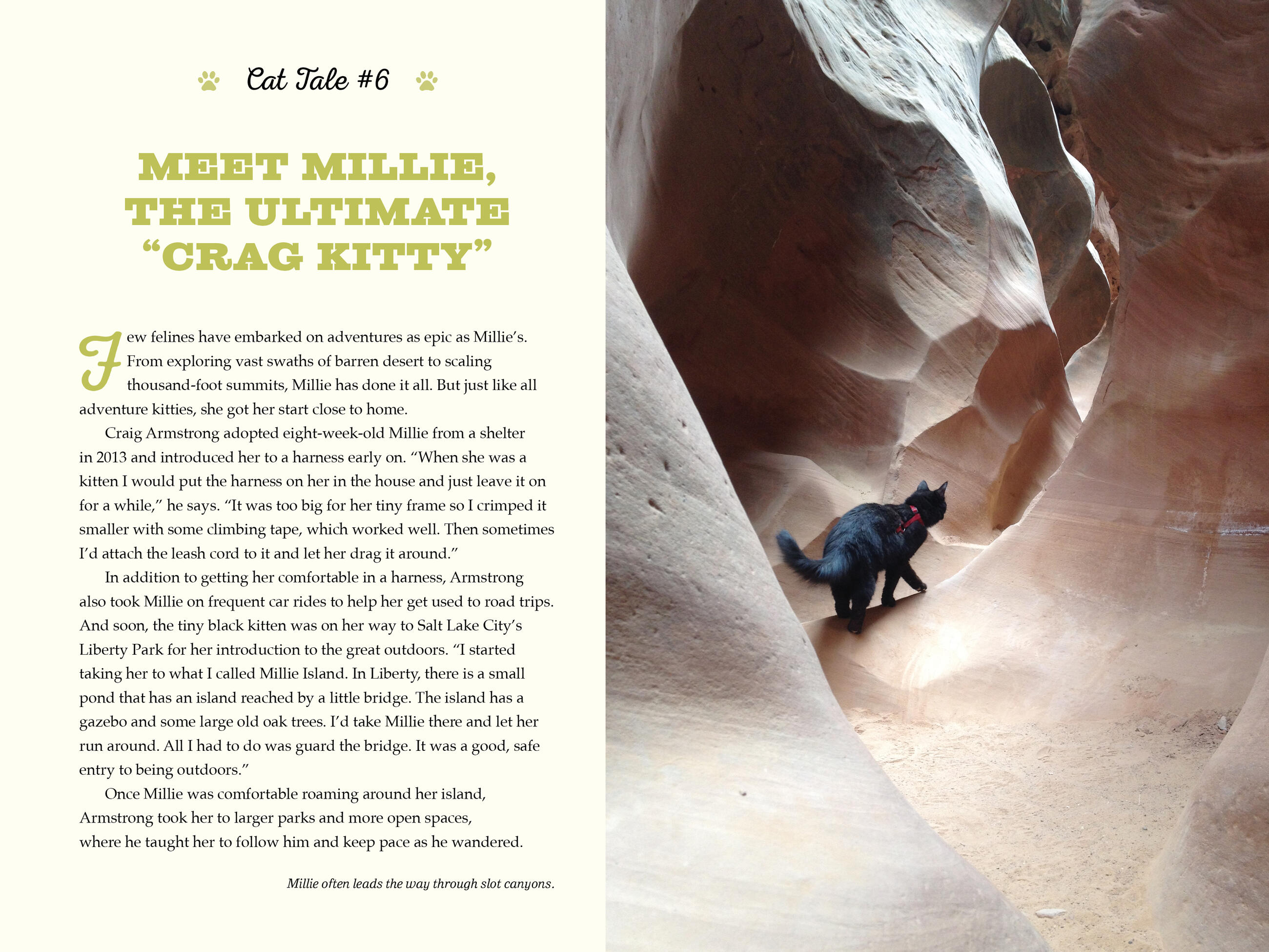 The stories themselves are catnip for animal lovers, from Nanakuli, the one-eyed cat who hangs ten; to Georgie, a four-year-old gray tabby who lives on a sailboat; to Quandary, who not only insists on hiking with her family but also teaches them a valuable lesson: When you follow your cat’s natural tendency to wander, you experience the outdoors at a slower, richer pace. This book will delight every cat person, regardless of whether their pet is inclined to adventure. (Take the quiz at the beginning of the book to find out!)