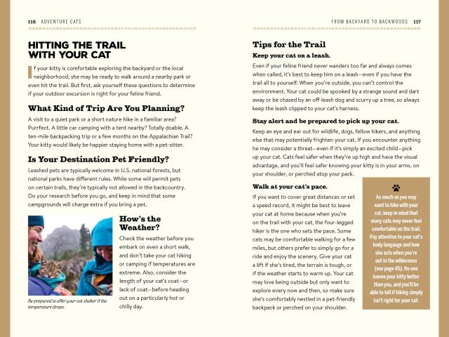 When animal writer and active hiker Laura Moss couldn’t find an online resource for hitting the trail with her cat, she created one. AdventureCats.org took off like wildfire, with attention from Wired, the Huffington Post, Outside magazine, BuzzFeed, and much more. Now, the book Adventure Cats—a collection of jaw-dropping photographs, inspiring stories of real-life cats, and all the how-to a cat owner needs—will take readers and their cats well beyond the backyard. Learn how to leash-train a cat. What to do if you encounter wildlife on the trail. Plus, winter safety tips, and how to bring a little bit of the outdoors to an indoor cat.