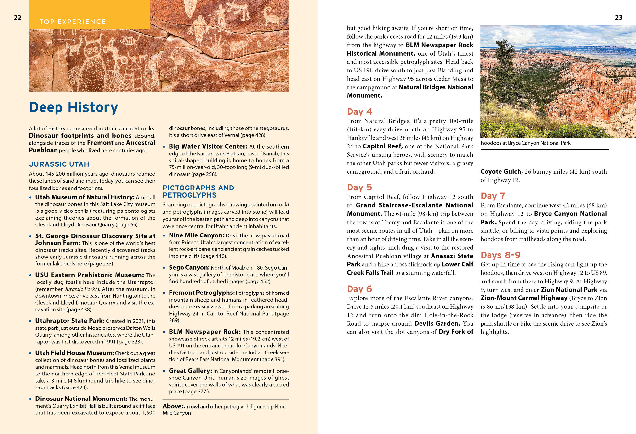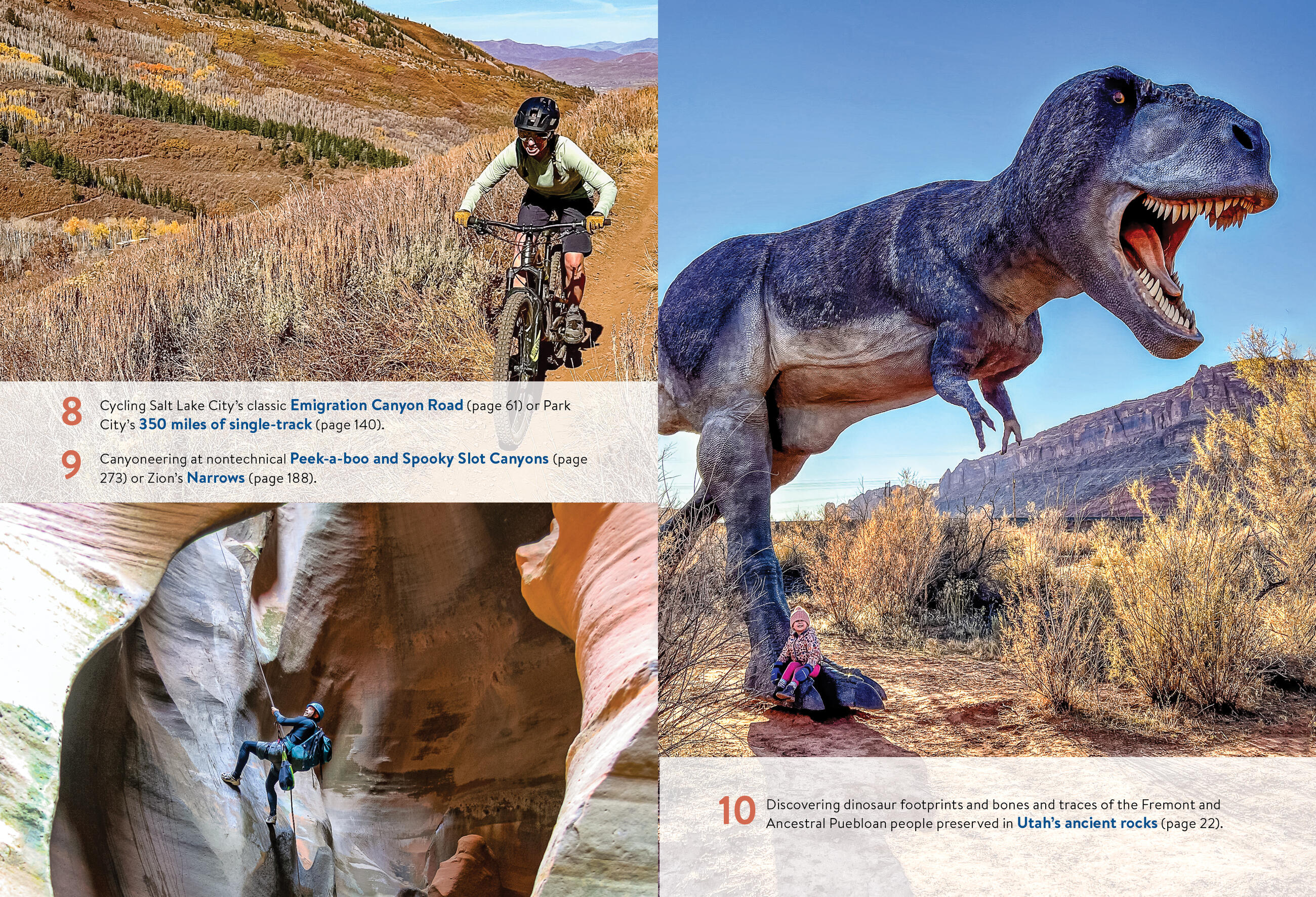 - Must-see highlights and unique experiences: Admire ancient Native American rock art and cliff dwellings, and walk beside fossilized dinosaur footprints. Explore historic Mormon sites in Salt Lake City, or wander through old mining towns