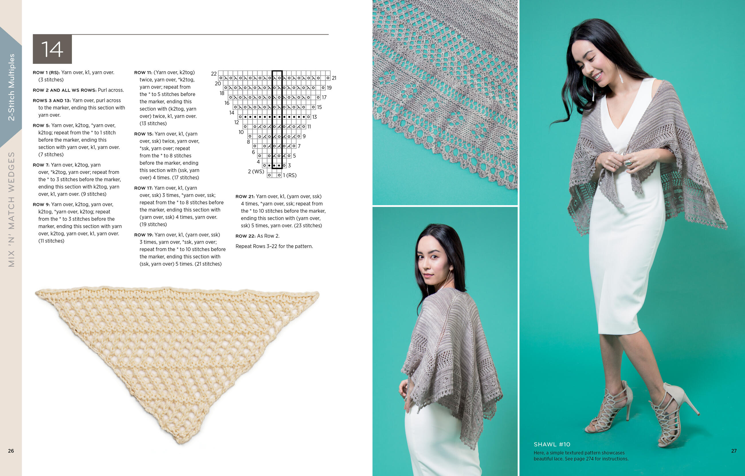 Beginning with a simple triangular wedge, Leapman shows how multiple knit triangles can be joined together to create square, rectangular, trapezoidal, and semicircular shapes. Her easy and customizable technique offers knitters of all levels endless flexibility in design and yarn choices. Charted patterns for 185 different stitches allow readers to select their favorite embellishment for the main fabric of their shawl. Colorful photographs of 20 of Leapman’s original designs illustrate the creative potential of this technique.
