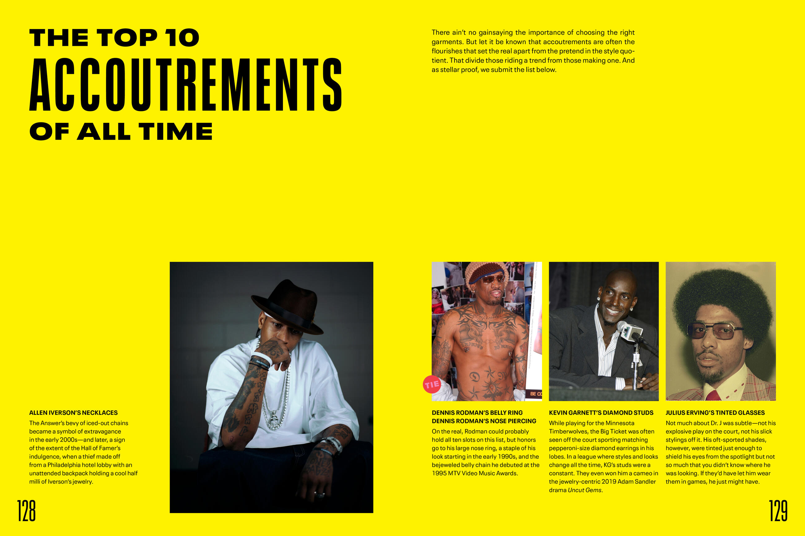 Each chapter explores the style of an era and the cultural influences that shaped it: The league’s inception in 1949, pre-Civil Rights Movement, when the NBA was mostly comprised of white players who wore suits and skinny ties. The years following the Civil Rights Act of 1964 and the birth of funk and R&B when basketball fashion got flashier (think Walt “Clyde” Frazier and Wilt Chamberlain wearing fur coats and big hats). The Michael Jordan era of the 1980s and 1990s, with its oversize suits. The epic Iverson/Hip-Hop years of the late 1990s and early 2000s. And now to today, a time defined not only by social media and high fashion’s birthing of the tunnel walk (think LeBron James, Dwyane Wade, and Russell Westbrook), but one in which athletes are idealized as style icons and activists, figures who inspire conversations beyond how they play and what they wear.