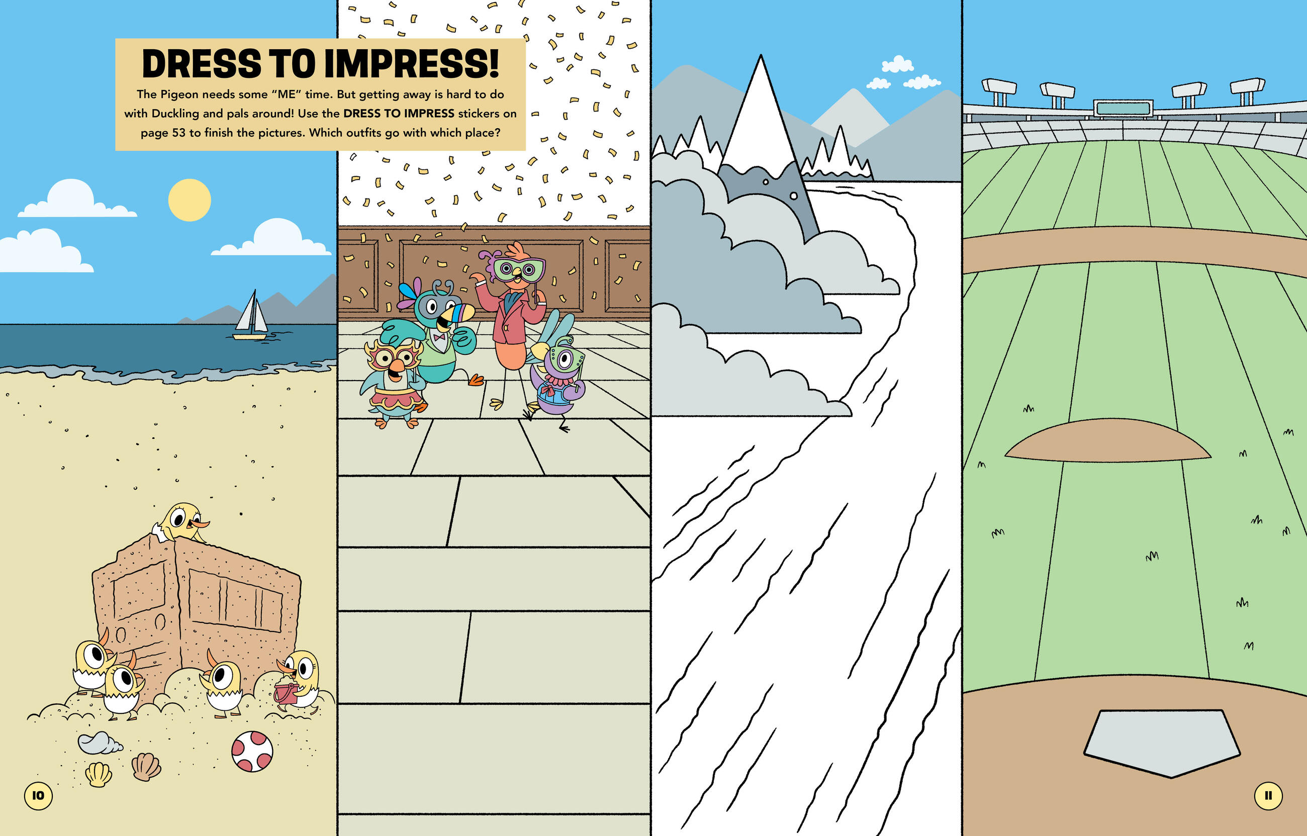 This fun-filled sticker-scene activity books features The Pigeon, Duckling, The Bus Driver, and more special guests. Decorate the bus with bumper stickers, sneak a peek at The Pigeon’s baby album, and make loop-de-loops on the roller coaster! Includes over 250 stickers to puzzle and play with!