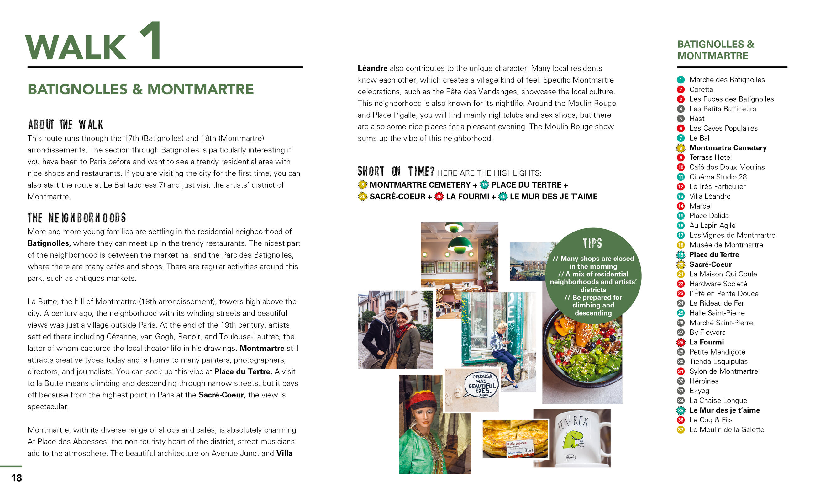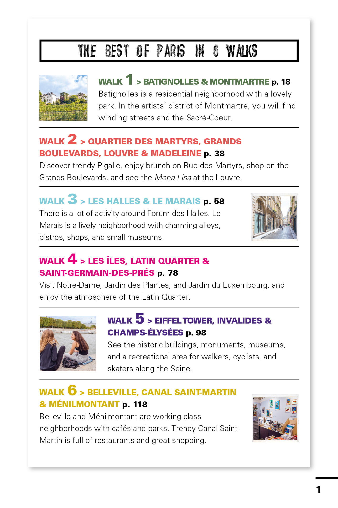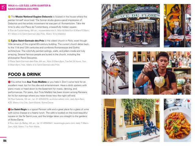 - Get to know the real Paris on six customizable walks: Discover a corner café and people-watch from the terrace over lunch. Wander through the Latin Quarter and stroll through verdant public gardens. Visit world-famous museums and galleries like the Louvre or shop for vintage designer threads. Browse a Sunday market for fresh produce and relax in the park with a baguette and fromage under the gaze of the Eiffel Tower. Linger at a trendy restaurant in the up-and-coming Belleville, sip stylish cocktails by the Seine, and dance the night away at the best clubs in town