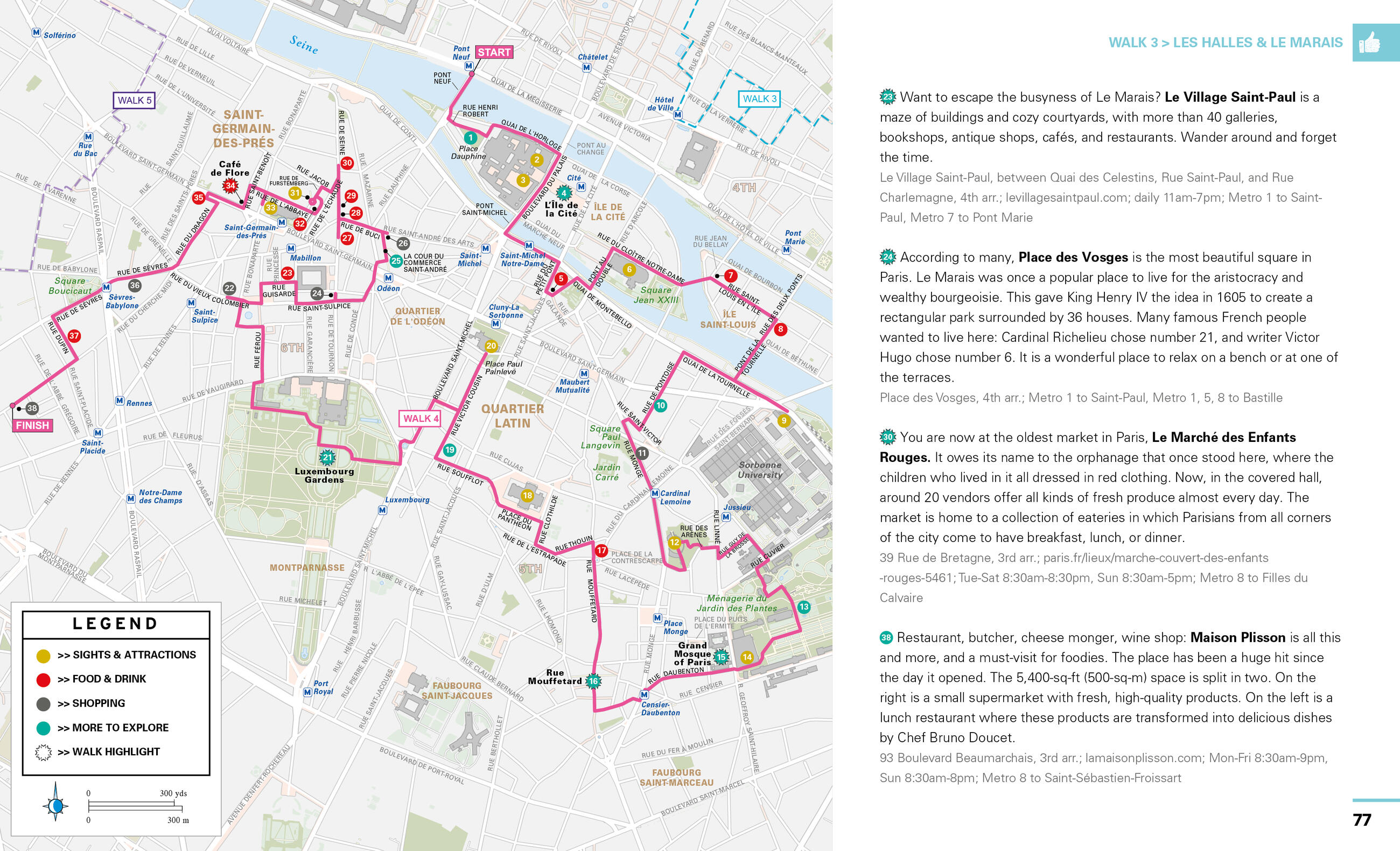 - Walk through the city’s coolest neighborhoods like Montmartre, Le Marais, Saint-Germain-des-Prés, and more, with color-coded stops and turn-by-turn directions