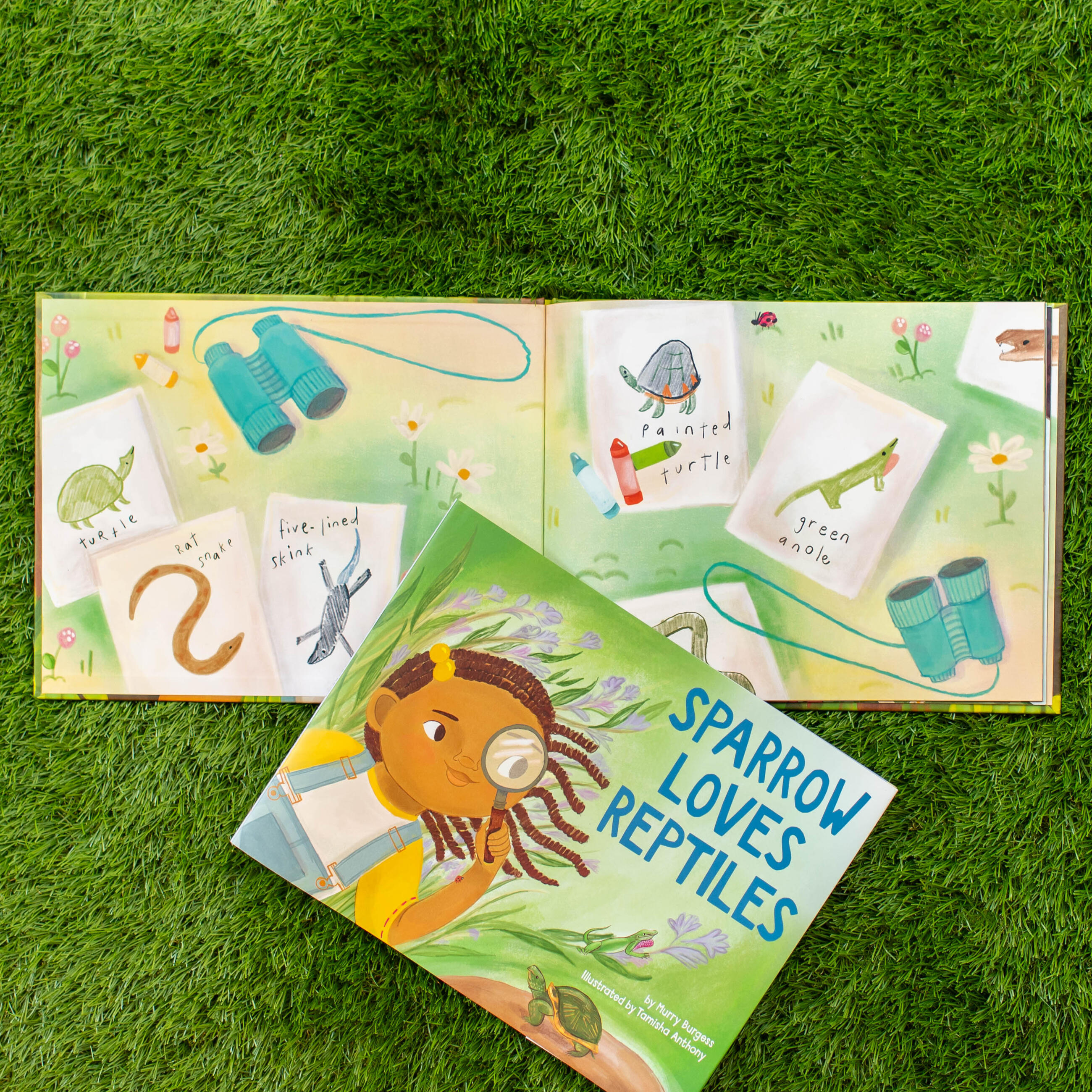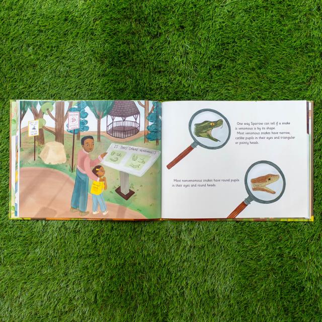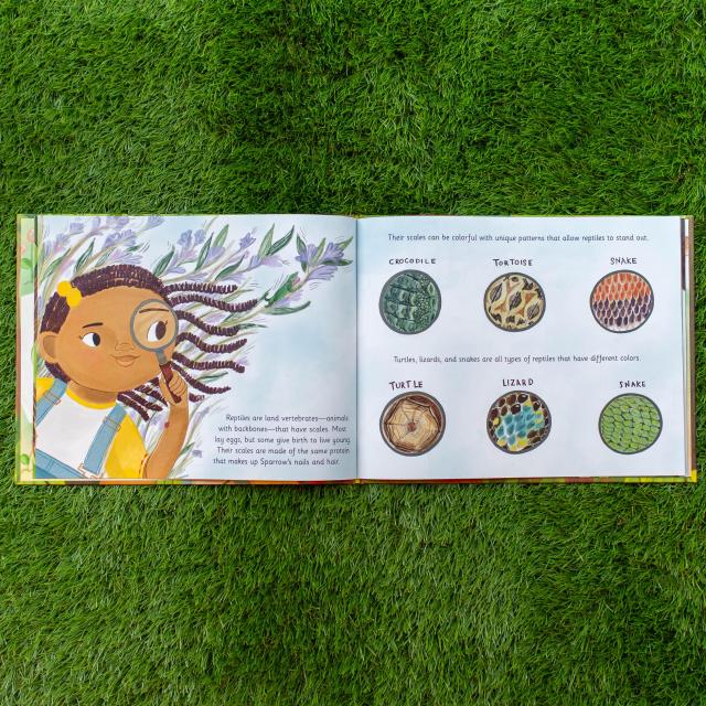 Sparrow is always curious. She loves to go outside and search for animals, drawing her findings in her sketchbook. Today, she’s looking for reptiles that slither, creep, and crawl. But these camouflaged animals are not always easy to spot as they blend into their surroundings. Luckily, Sparrow is patient as well as eager to learn more about the lizards, turtles, and snakes that inhabit the park in her neighborhood.