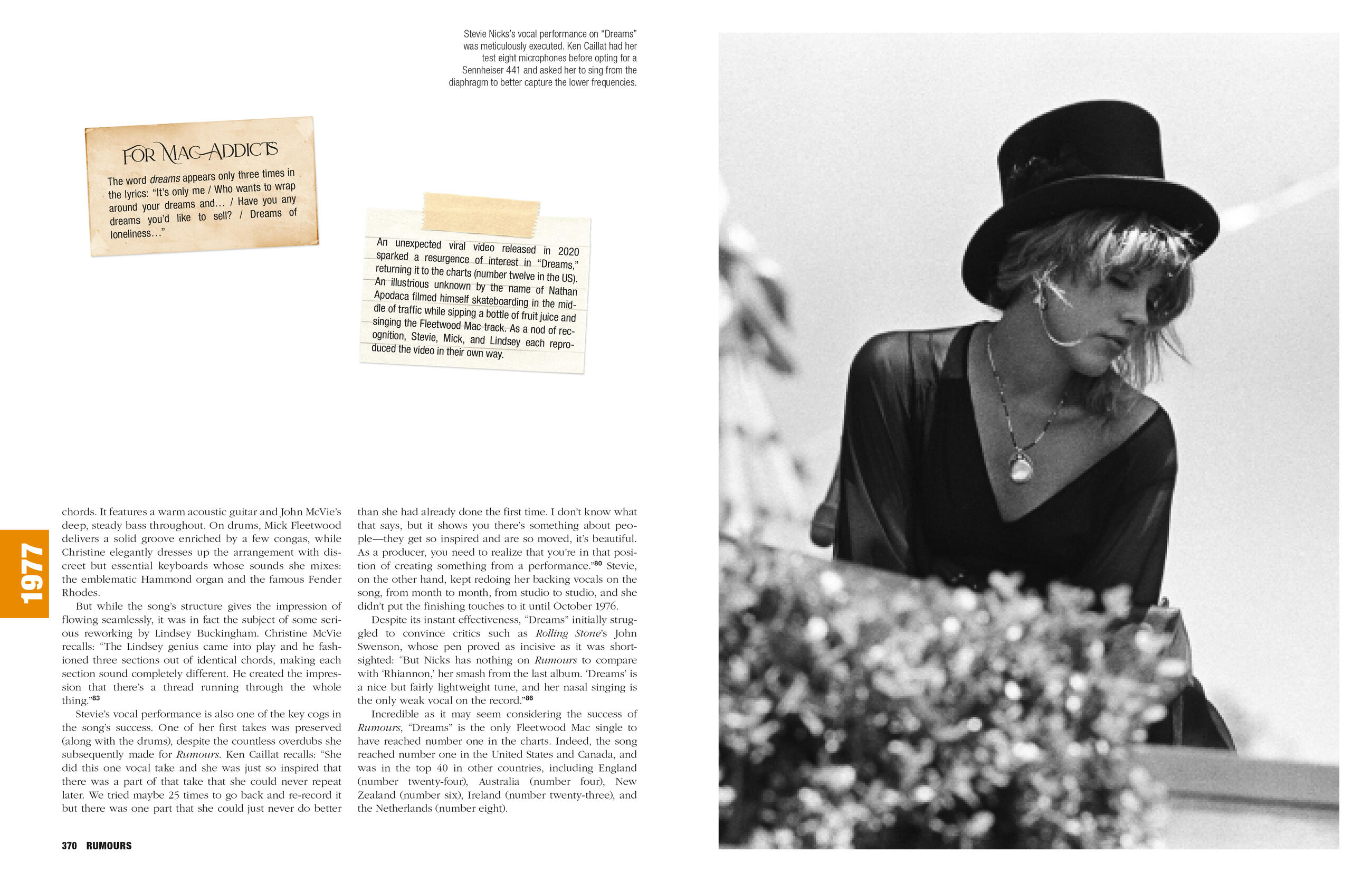• "Olivier Roubin and Romuald Ollivier go deeper than perhaps anyone has before, telling the stories behind every single song the band ever recorded — including many outtakes and unreleased tracks. The result is an exhaustive, 600-plus-page tome documenting both the nitty-gritty musical and production details that went into the making of hits like “Dreams” and “Go Your Own Way,” and the heady mix of emotions and interpersonal drama that inspired the songs."