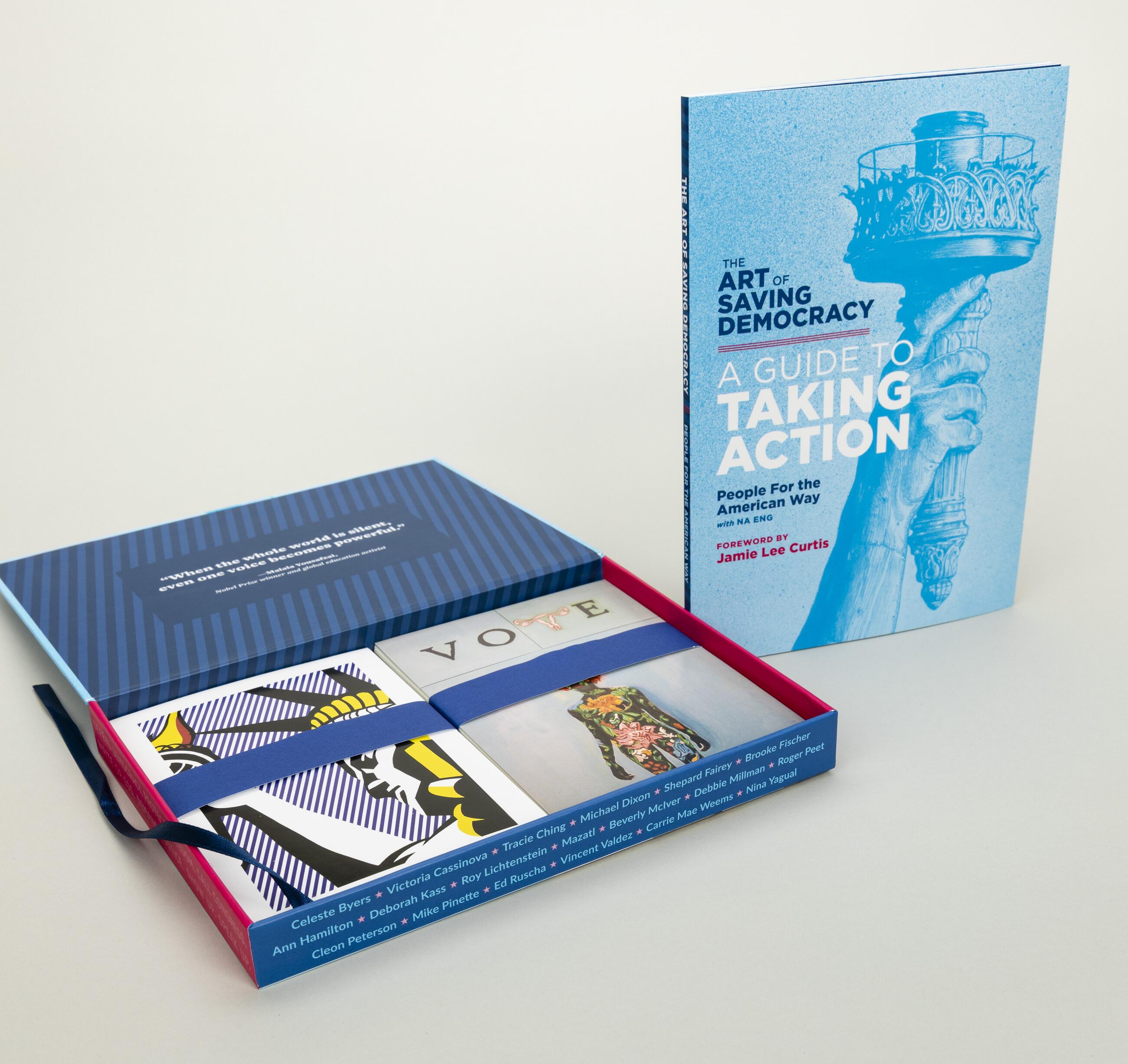 The Art of Saving Democracy features the work of 20 renowned American artists—such as Roy Lichtenstein, Shepard Fairey, Carrie Mae Weems, Vincent Valdez, and Deborah Kass—and includes: