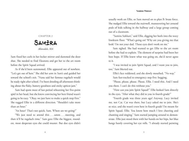 Meanwhile, in the United States, his cousin, Samira, has been trying to make her own mark. Anxious to fit in at school, she joins the Spirit Squad where her natural artistic ability attracts the attention of the popular leader. Then Kareem is sent to live with Sam’s family, and their worlds collide. As graffitied messages appear around town and all eyes turn to Kareem, Sam must make a choice: does she shy away to protect her new social status, or does she stand with her cousin?