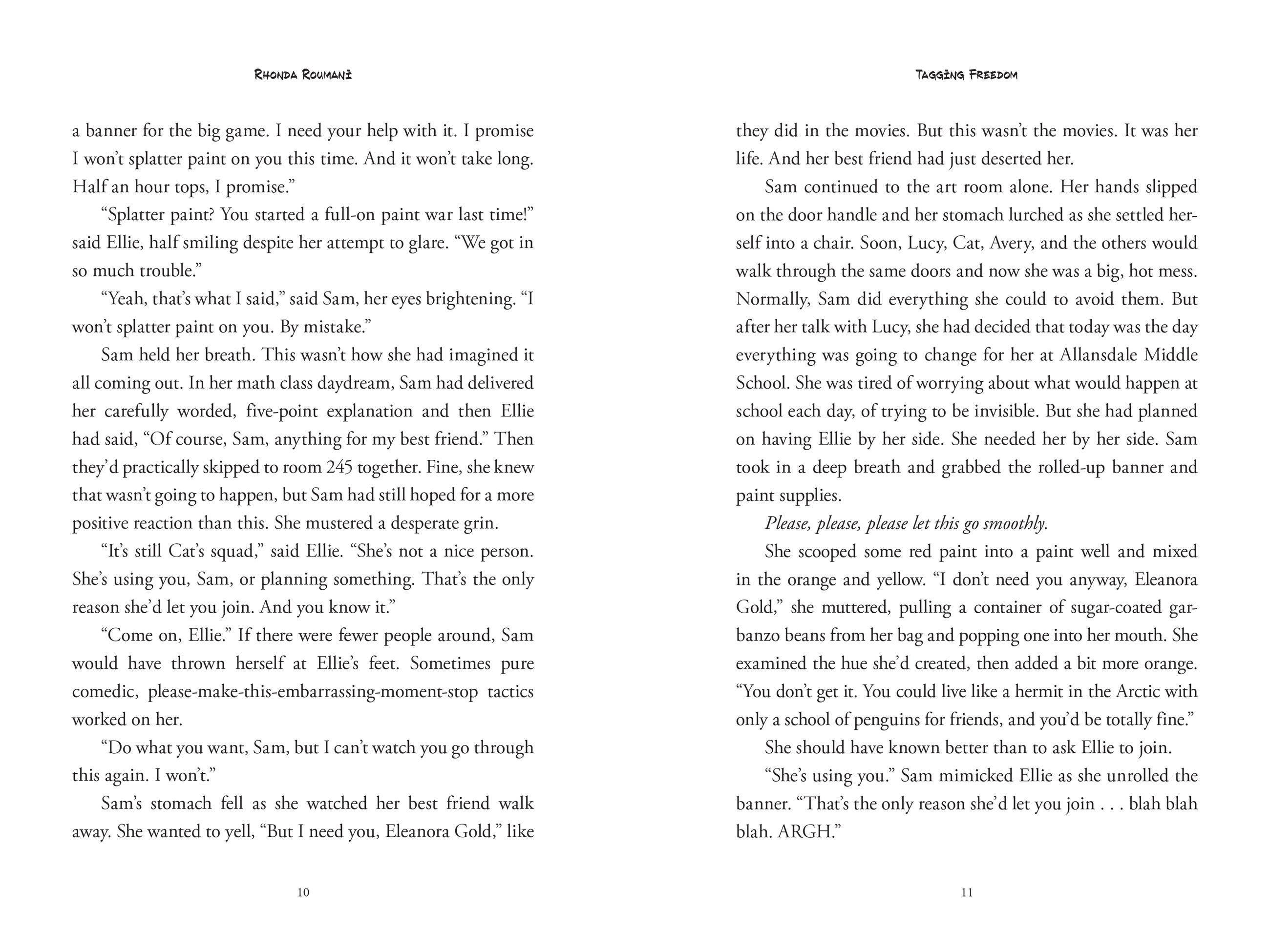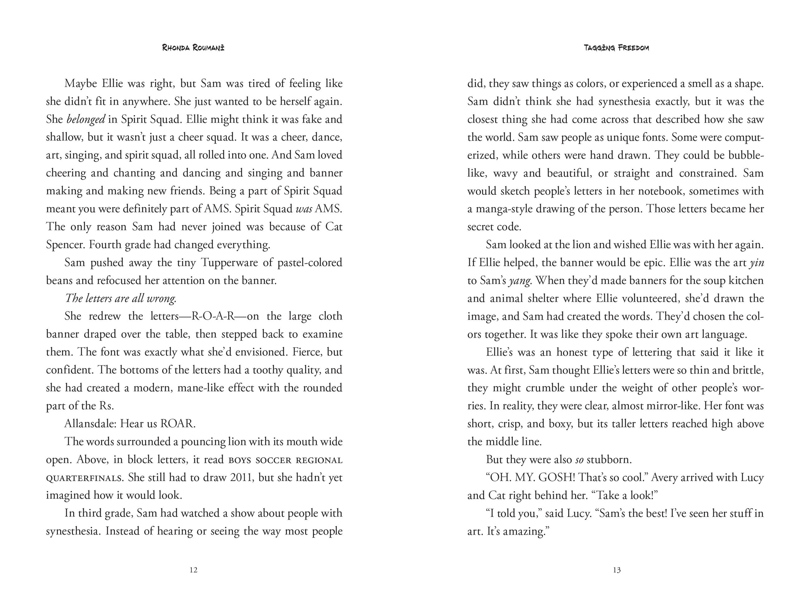 Informed by her time as a journalist, author Rhonda Roumani’s Tagging Freedom is a thoughtful look at the intersection between art and activism, infused with rich details and a realistic portrayal of how war affects and inspires children, similar to middle grade books for middle schoolers by Aisha Saeed, The Night Diary by Veera Hiranandi, or Refugee by Alan Gratz.