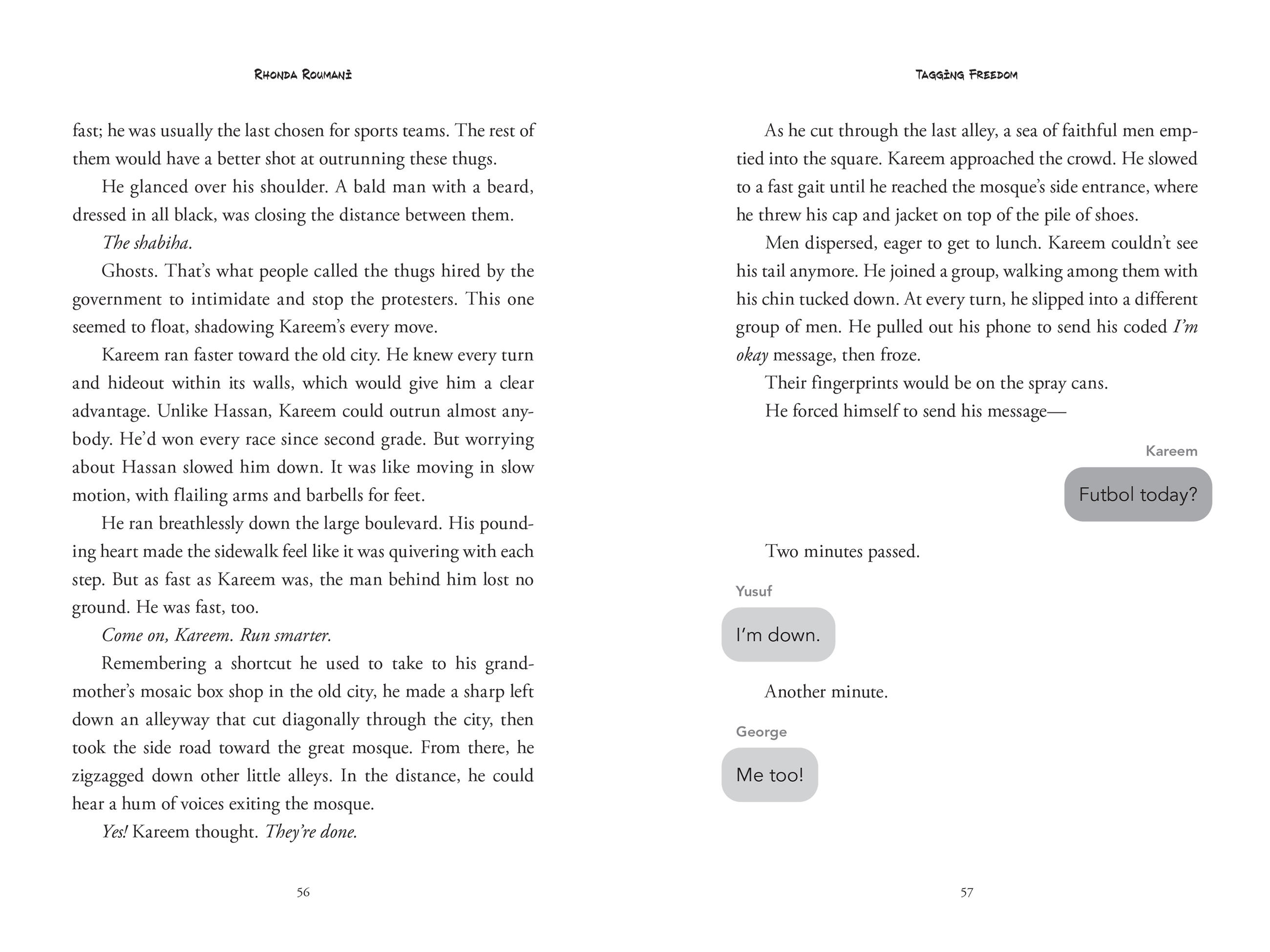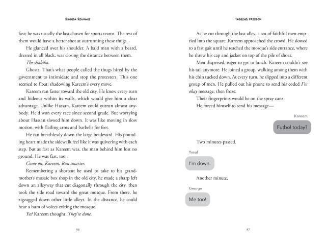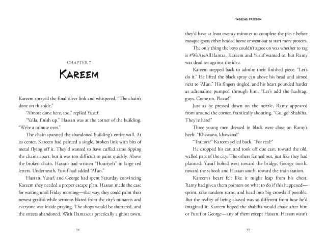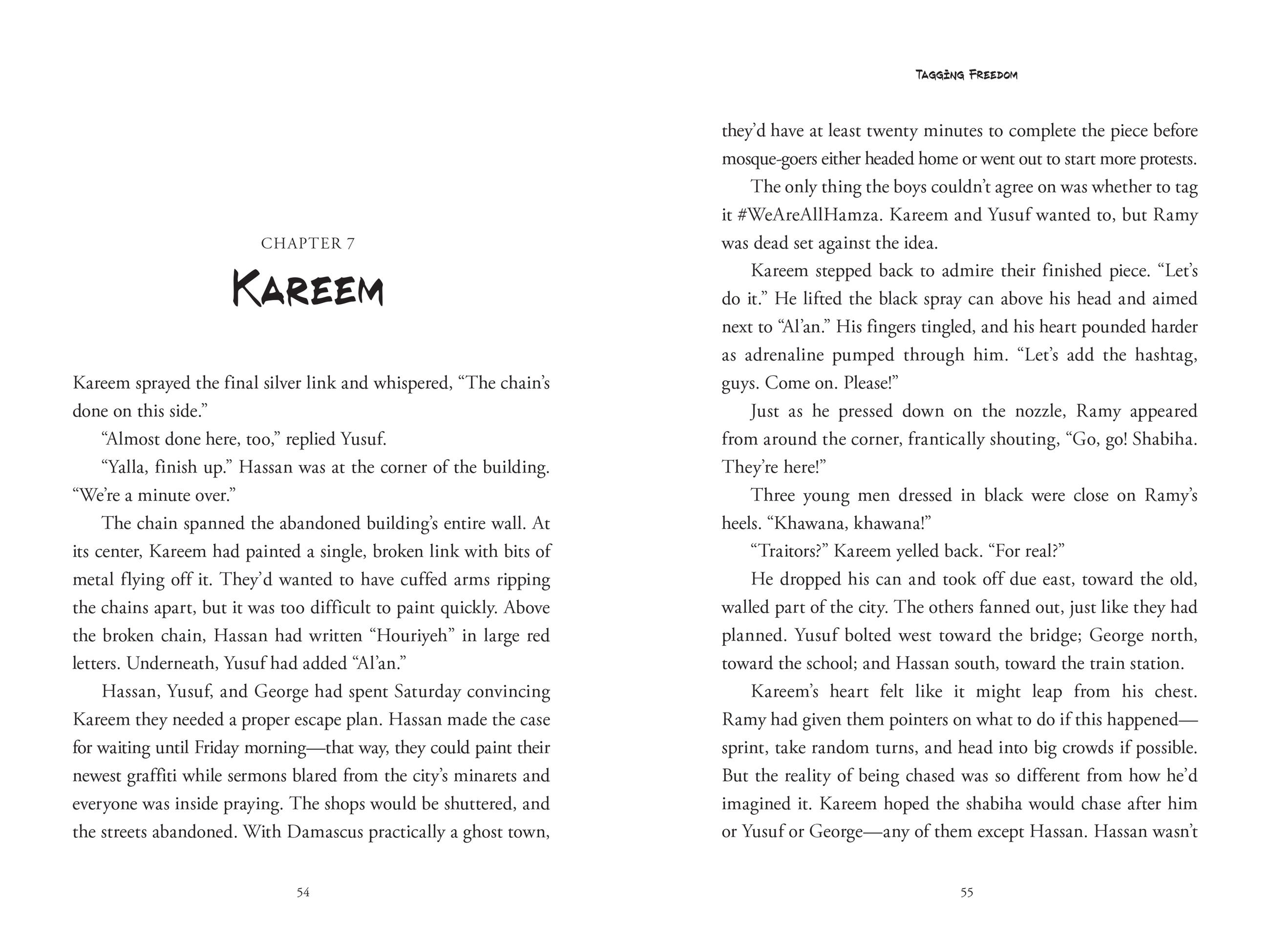 Kareem Haddad of Damascus, Syria, never dreamed of becoming a graffiti artist. But when a group of boys from another town tag subversive slogans outside their school, and another boy is killed while in custody, Kareem and his friends are inspired to start secretly tagmessages of freedom around their city.
