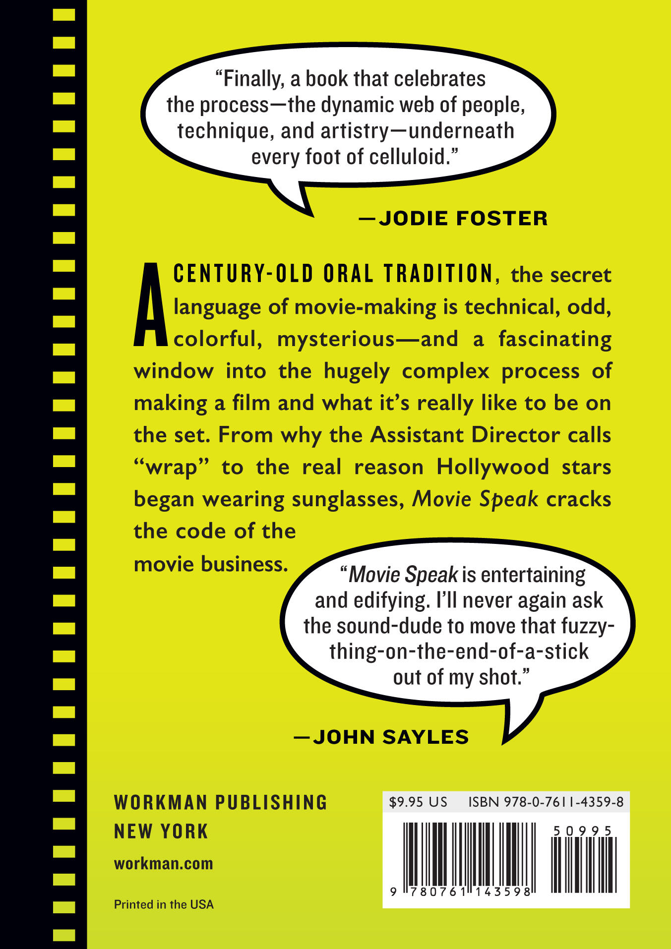 “Finally, a book that celebrates the process—the dynamic web of people, technique, and artistry—underneath every foot of celluloid.” —Jodie Foster