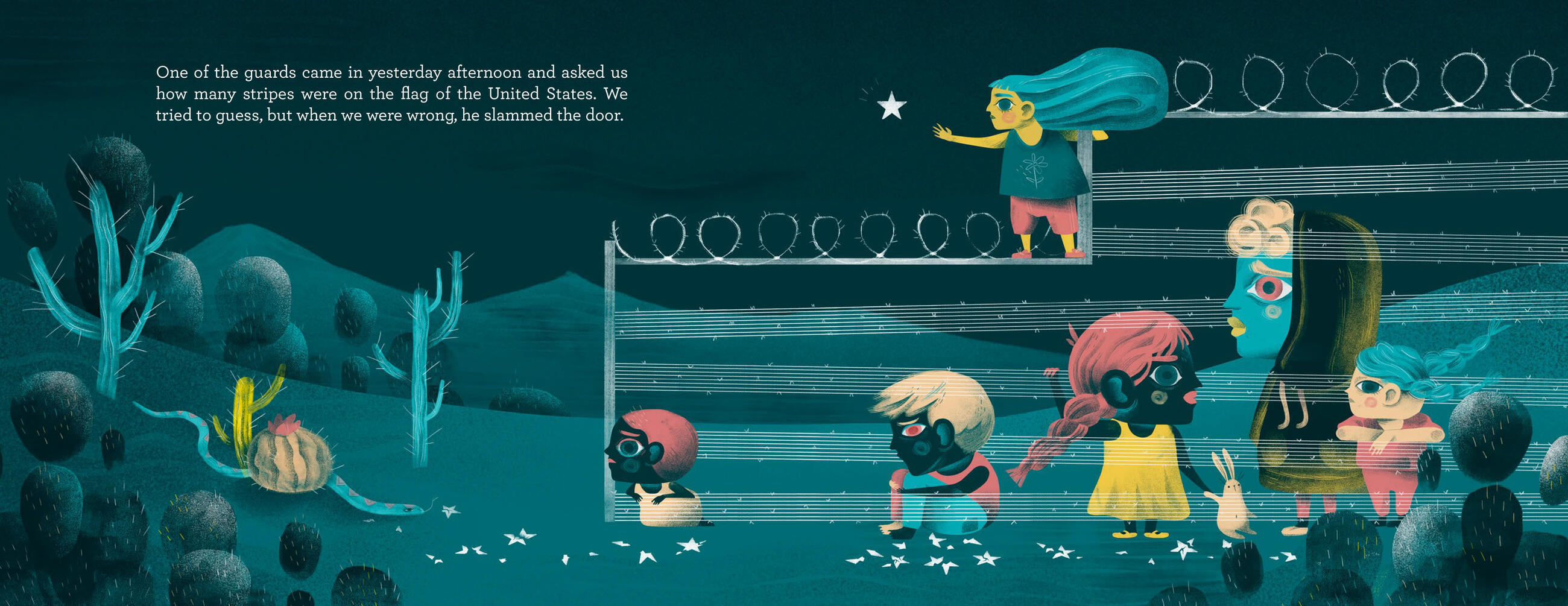 “In Spanish and in English, a devastating first-person account of children’s experiences in detention at the southern U.S. border…. A powerful, critical document only made more heartbreaking in picture-book form.” —Kirkus Reviews starred review